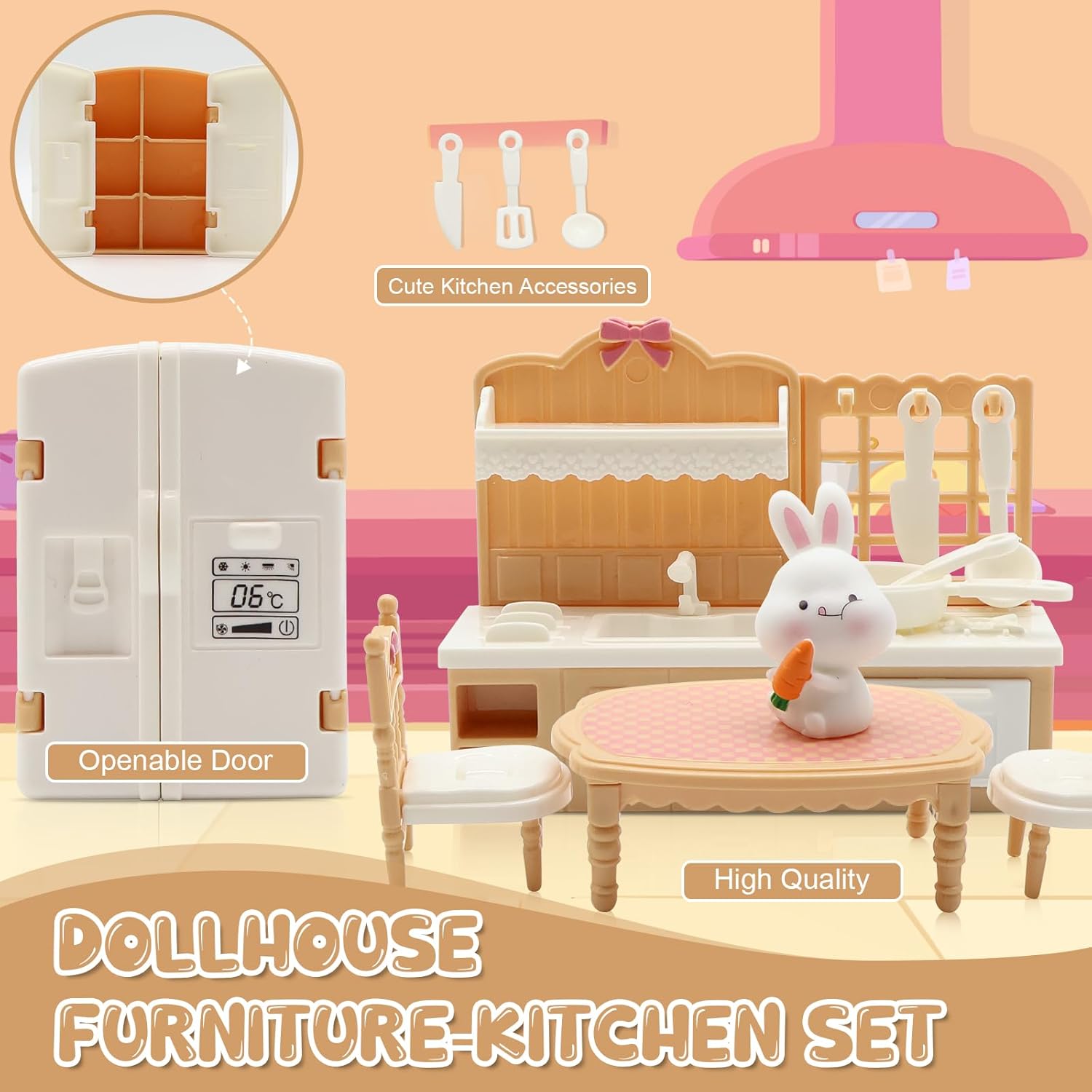 - 💟 THE COMPLETE DOLLHOUSE EXPERIENCE WITH BUNNY FIGURINES – This set includes not only exquisite dolls house furniture and figures but also four adorable bunny figurines. Perfect for creating entire storylines and enhancing role-playing scenarios with these charming characters.