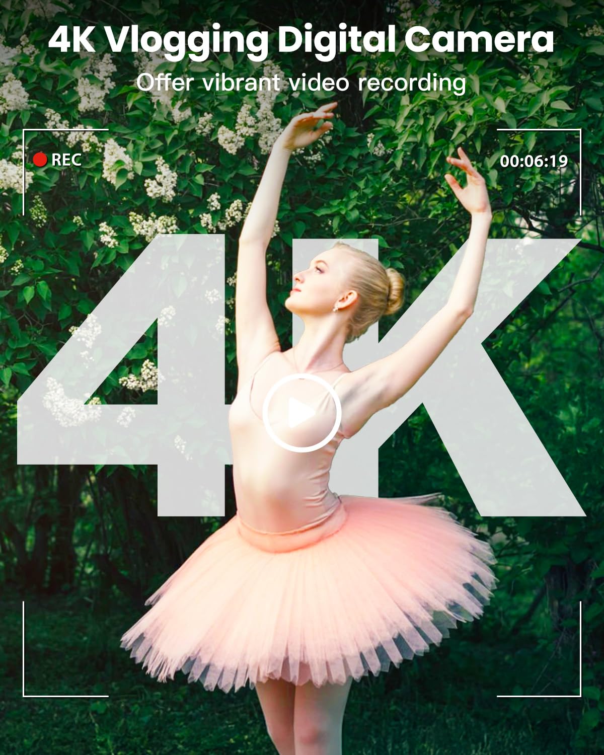 - 【64MP 4K Digital Camera with Autofocus】 The newest 4K digital camera for photography captures Ultra HD 4K videos and high-quality 64MP photos with vibrant colors, which is suitable for recording family activities or shooting vlogs. High quality images and high pixel video sensor can capture every memorable moment clearly.The HD digital camera is also equipped with a high-brightness flash to capture clear images in dark environments.
