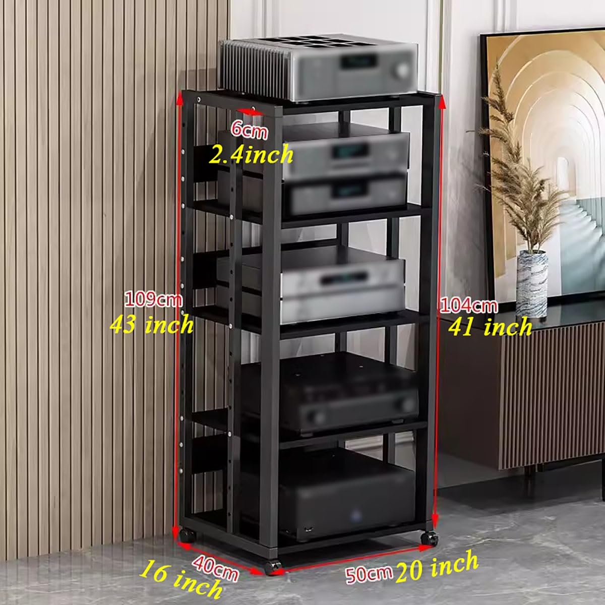 5 Tier Living Room Media Stand For Game Console, Large Movable Stereo Audio Video Tower Component Rack For Home Theater Entertainment Center, Corner Shelf For Record Players…