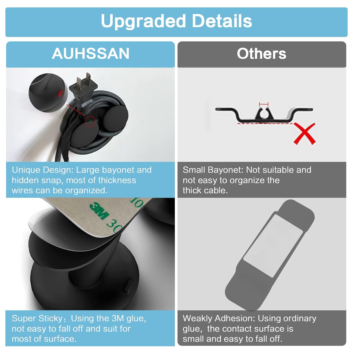- 【Strong Adhesion & Fit Curved Surface】Using the strong adhesive glue, this appliance cord winder will not easy to fall off and will not leave traces on the surface. Not only it can stick on the flat surface, it also can be used in the curved surface for its special design and strong adhesion.