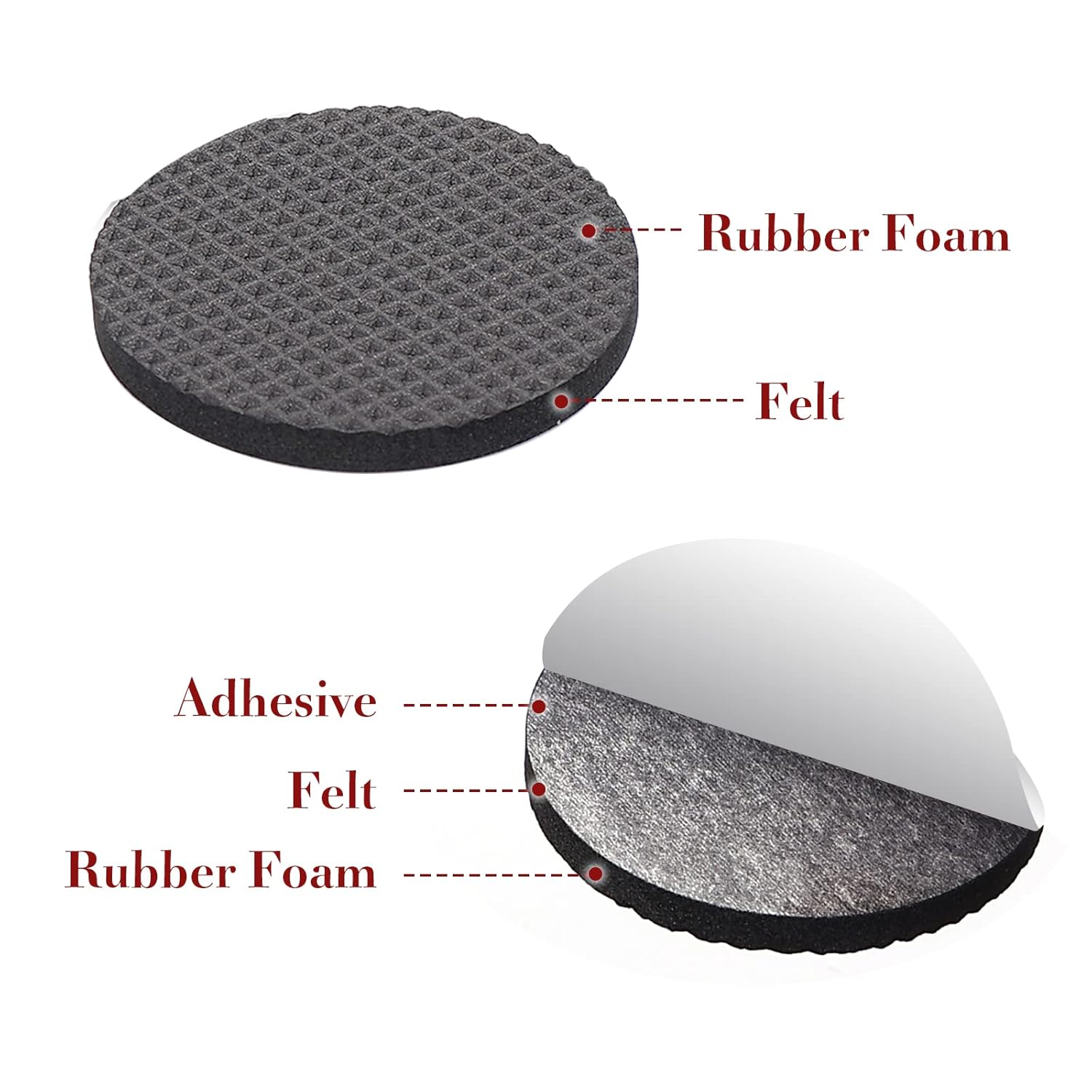 - STRONG SELF ADHESIVE: We professionally designed and produce self-stick pads for chair legs and other furniture. Floor Protectors for furniture made of EVA that keeps the non skid furniture pads in place firmly and last longer.