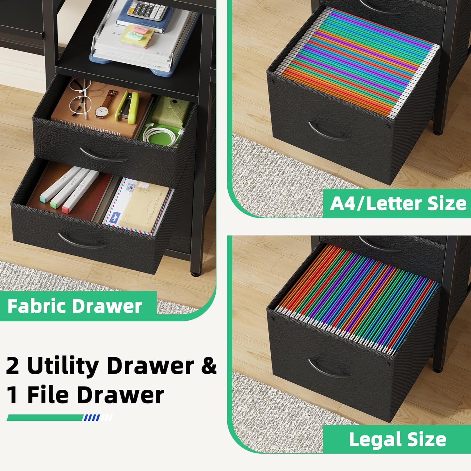 - 【3 Large Drawers】No longer messy! 2 Storage drawers and 1 large file drawer offer ample storage space to keep your workspace organized. Filing drawer is perfect for hanging A4/Letter/Legal-sized file folders