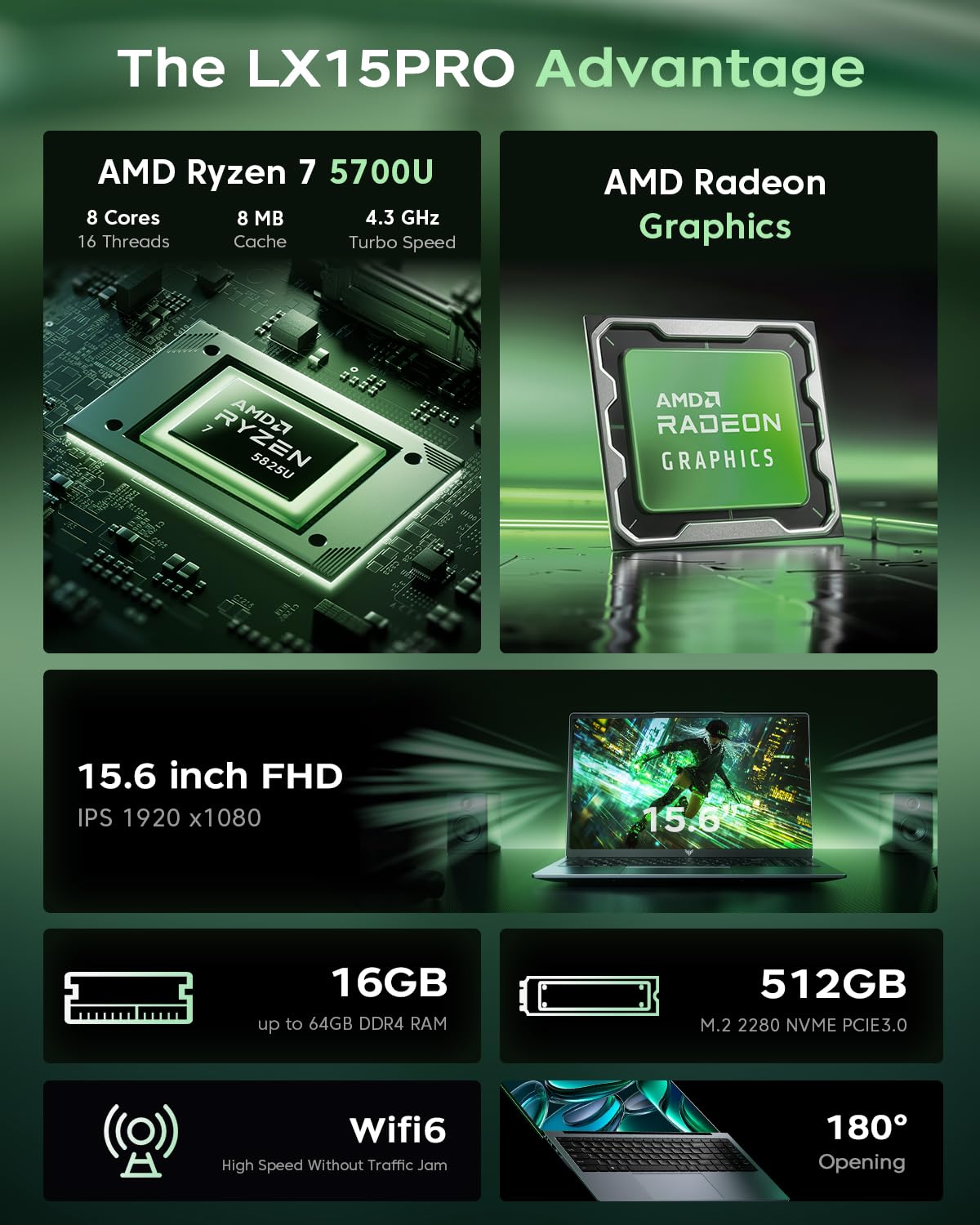 - 【AMD Ryzen 7 5700U Processor】Speed Meets Efficiency, ACEMAGIC LX15 PRO Tackle daily tasks effortlessly with the AMD Ryzen 7 5700U CPU processor with 8 cores and 16 threads up to 4.3GHz, (MULTI Running points 8152 / SINGLE Running points 1242). Ideal for office work, light gaming, and seamless multitasking without lag.
