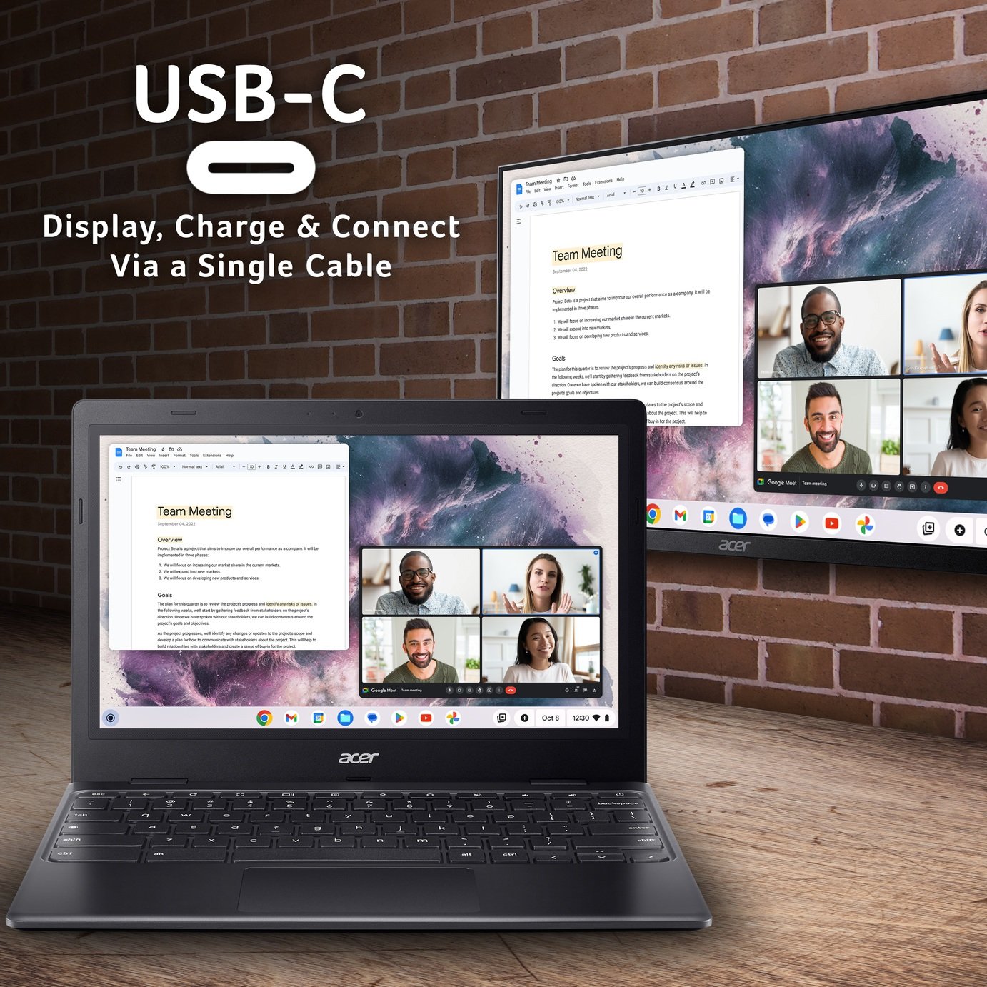 - Box Contents: CBOA311-1H Chromebook, 36W AC/DC Power adapter, Quick start guide.
