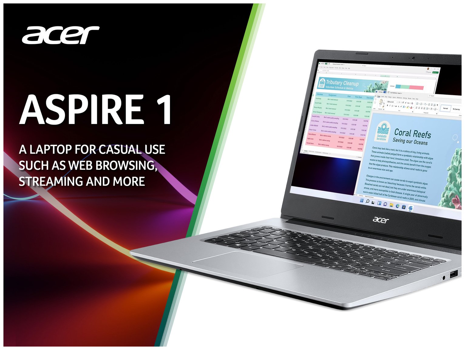 Acer’s Aspire 1 is an ideal for day-to-day use, with a range of features to meet your needs. Featuring an Intel Celeron CPU and 4GB of RAM, the Aspire 1 can easily handle tasks such as web browsing or editing documents. You also get 64GB of storage for all your apps & files. The 14-inch screen features an HD resolution and Acer’s BlueLightShield technology to help reduce eye strain and fatigue.