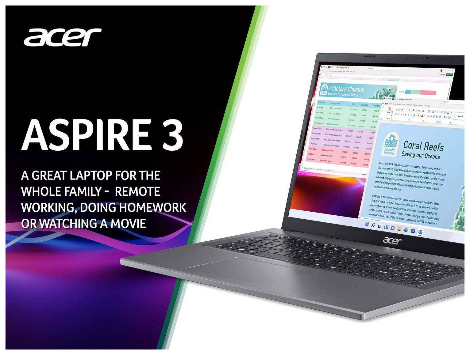 - Box Contents: Aspire 3 Laptop, 12-month subscription of Microsoft 365 Personal, 45W 3-Pin Charger & Setup Guide.