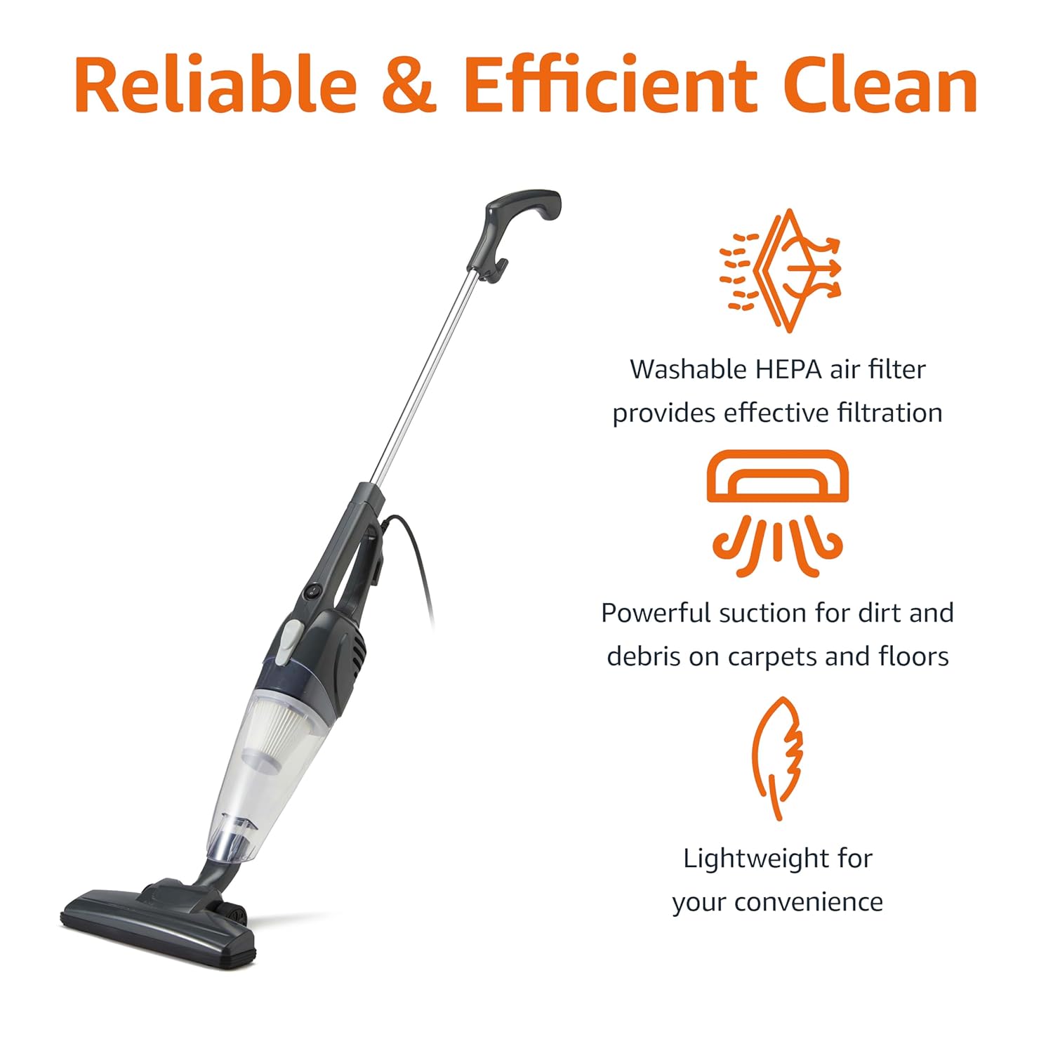 Amazon Basics 2-in-1 Corded Upright Vacuum Cleaner, ECO Motor, HEPA filtration, Lightweight Stick, Black