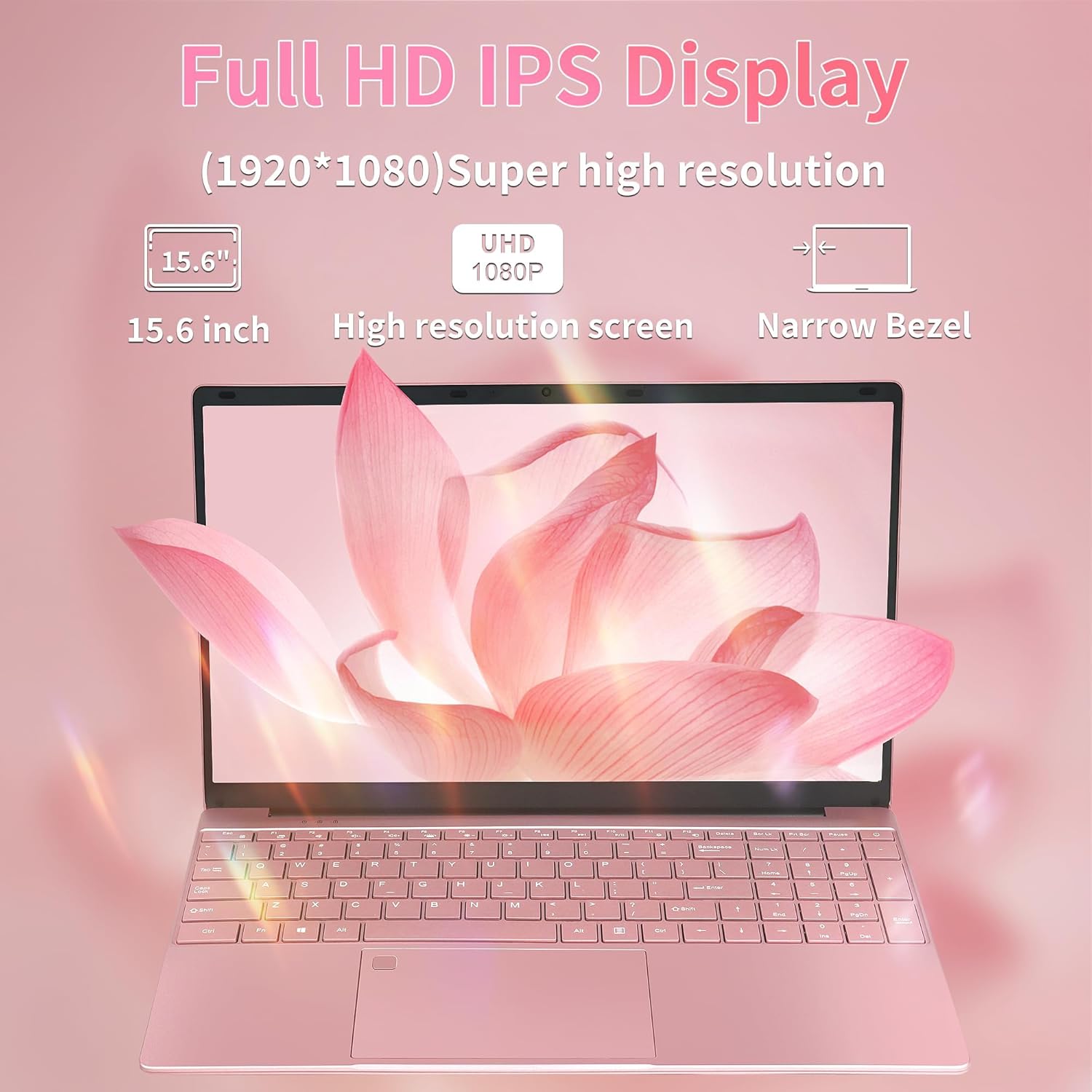 Amita 15.6″ Laptop,12th Gen N95(Up to 3.4Ghz),DDR4 16G RAM, 512GB NVME SSD, Windows 11&Office 2019,Fingerprint Lock,Portable Notebook PC with Backlit KB,Pink(16+512GB)