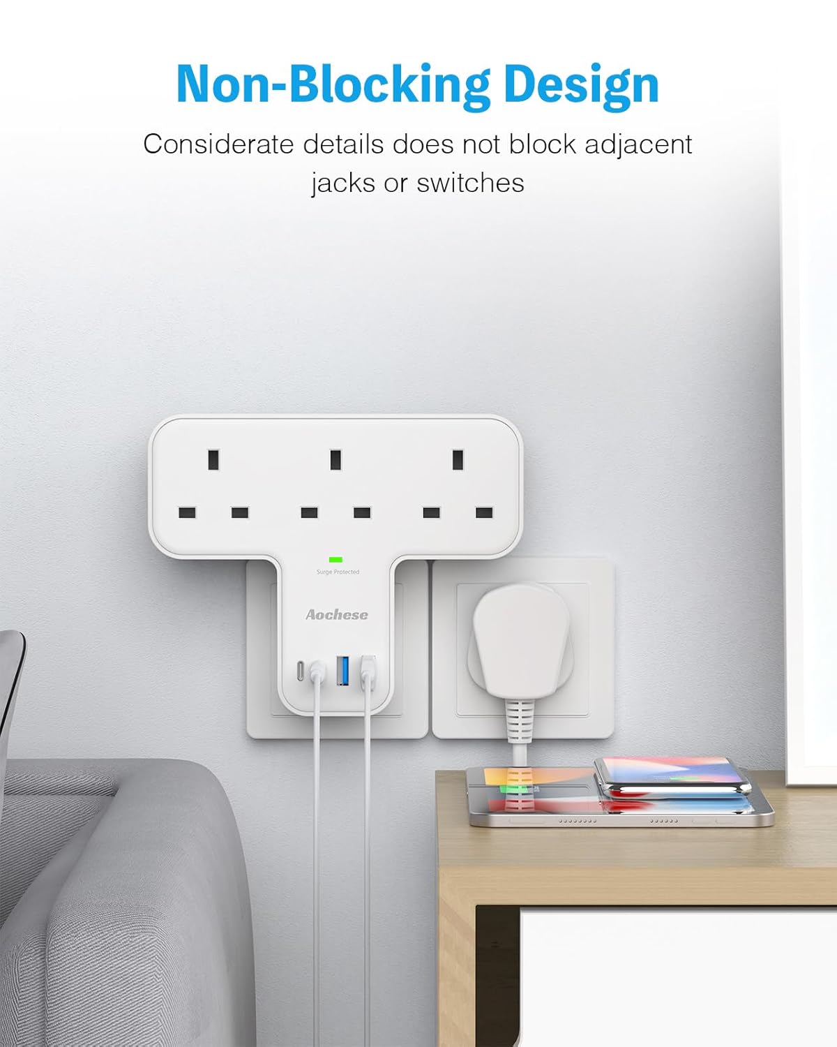 - ✅Non-Blocking Design & Space Saving: The dimension of this socket extension is 16.1 x 13 x 3cm, the adapter plug UK is cable-free and can be used by plugging it directly into one outlet on the wall panel. The wide-pitch design doesn’t block neighbouring plugs, very convenient when you need to connect multiple devices at the same time.
