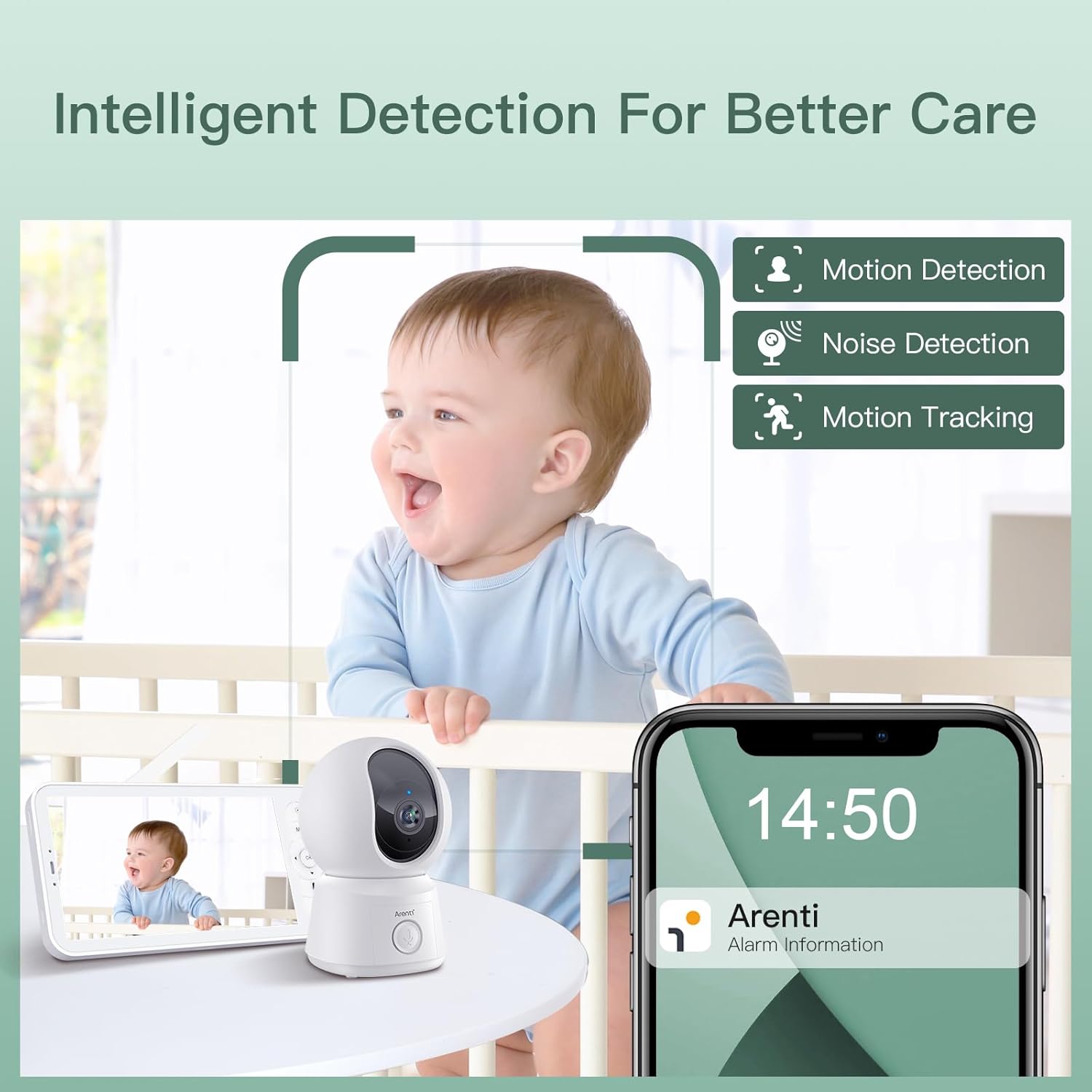 ARENTI 1080P Wifi Video Baby Monitor with Camera and App,Night Vision,5″ Split Screen,3000mAh Battery,Pan Tilt Zoom,Auto Tracking,300m Long Range,Temperature Sensor,Cry&Motion…