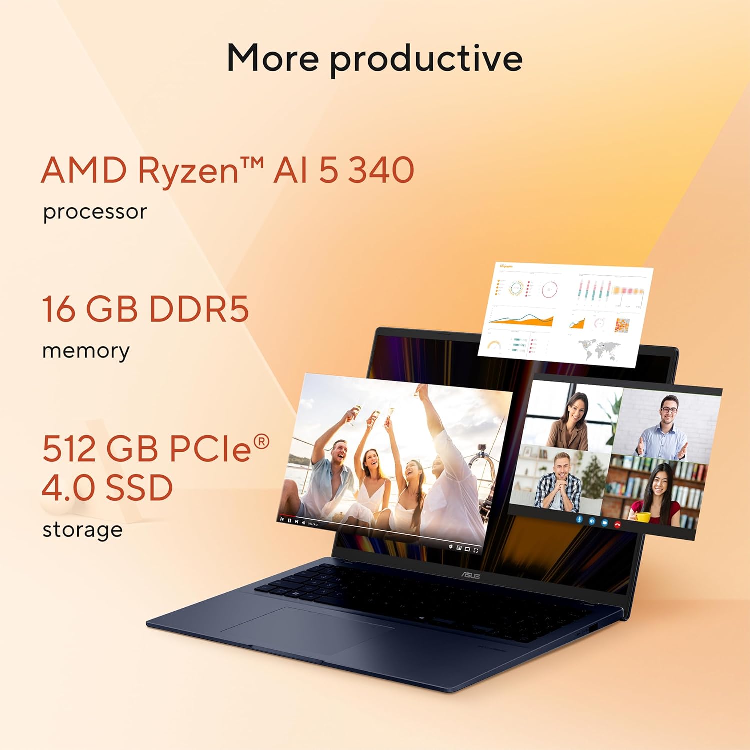 ASUS Vivobook 16 Laptop, Copilot+ PC, 16” WUXGA 60Hz Display, AMD Ryzen AI 5 340 with XDNA NPU, AMD Radeon Graphics, 16GB RAM, 512GB SSD, Quiet Blue, M1607KA-DS54