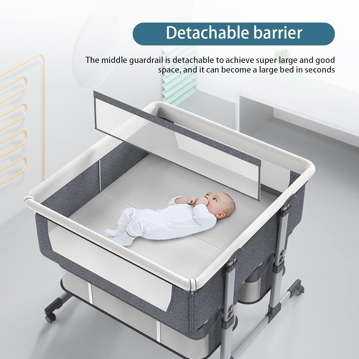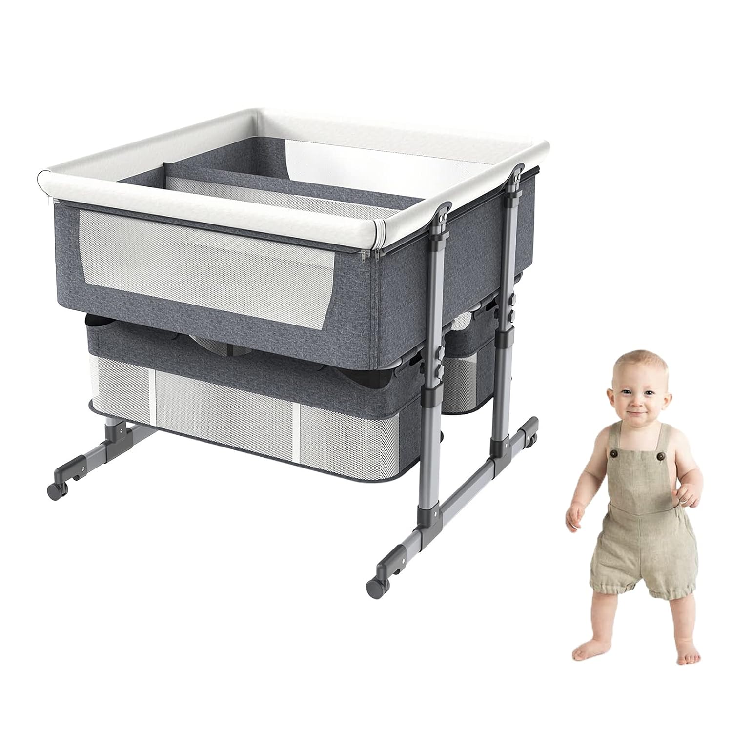 Baby Beside Crib,baby bed twinswith Storage Basket,Sleep by Me Crib,Co-Sleeping,6 Height Adjustable Easy Folding Sleeper Cot,Portable Basinette Baby Bed for Infant,Newborn,Baby Boys & Girls