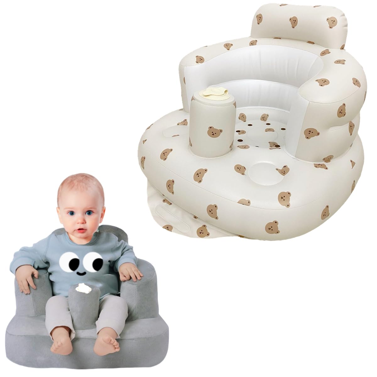 - 【Mult-Functional Baby Chair】This baby sit-up chair is applicable to the floor in your home, bed, bathroom, grass,etc.Baby inflatable seat is ideal for bathing, playing, and feeding.