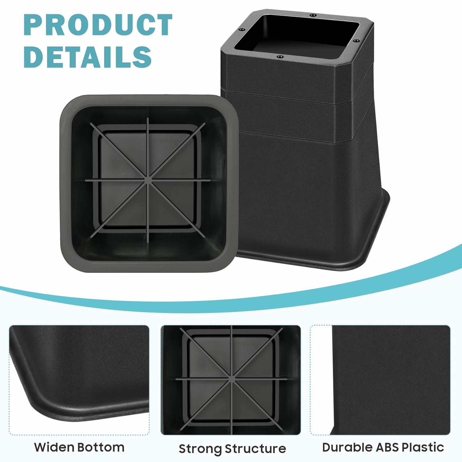 - ✔ STURDY — Our furniture risers are made of premium ABS plastic, which could provide superior weight-bearing capacity and stability