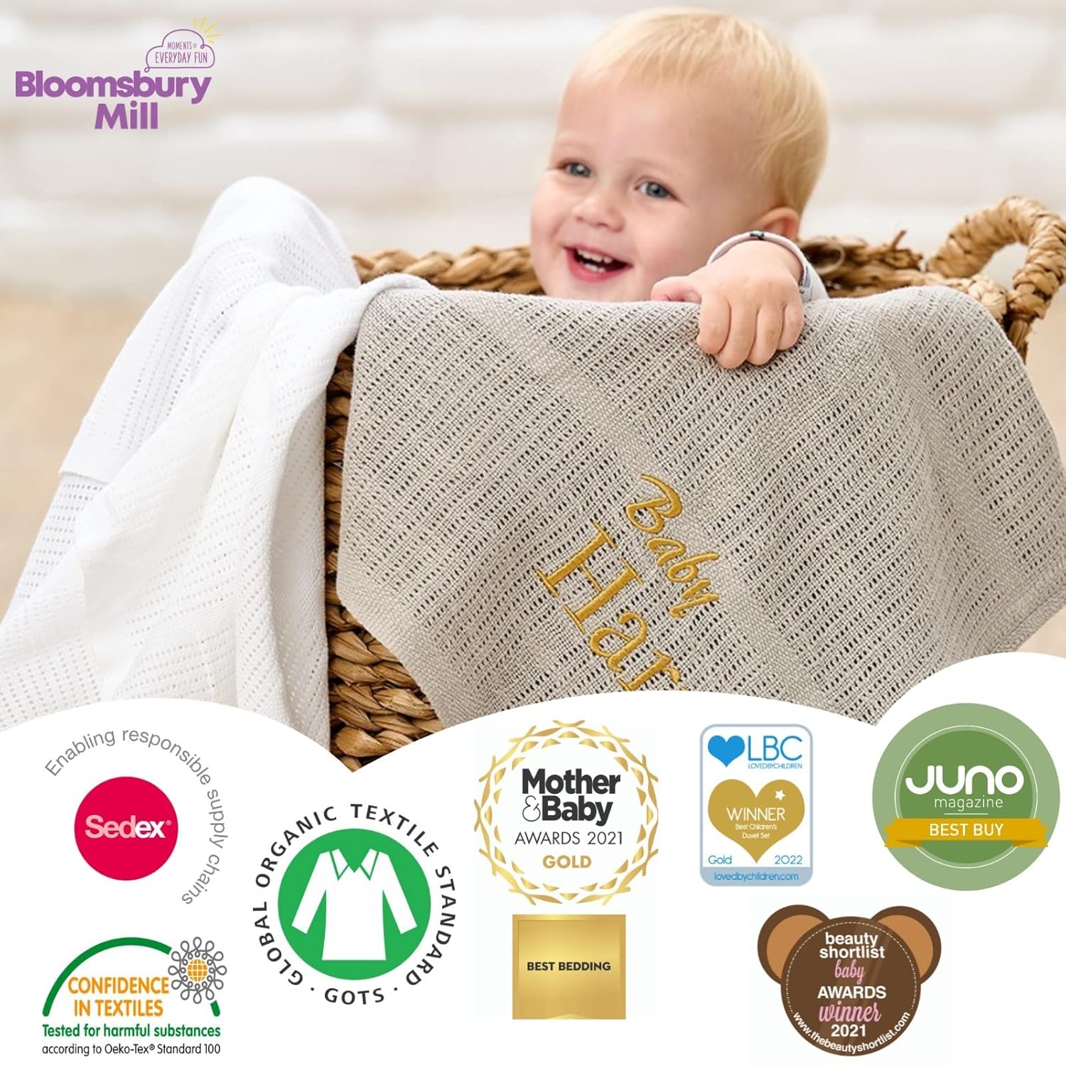 Bloomsbury Mill – Cellular Blankets Baby – Soft 100% Organic Cotton Baby Blanket – Pack of 2 – Baby Essentials For Newborn – Ideal for Cot Bed, Travel, Car Seat, Pram, Moses…