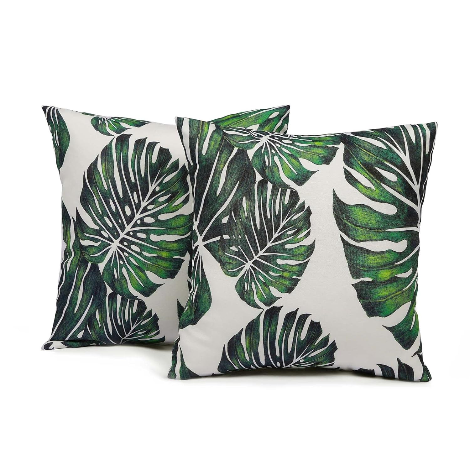 Brentfords 2 x Tropical Leaf Cushion Covers Water Resistant Decorative Printed Green Outdoor Garden Sofa Chair Seat Pillow, 45 x 45cm