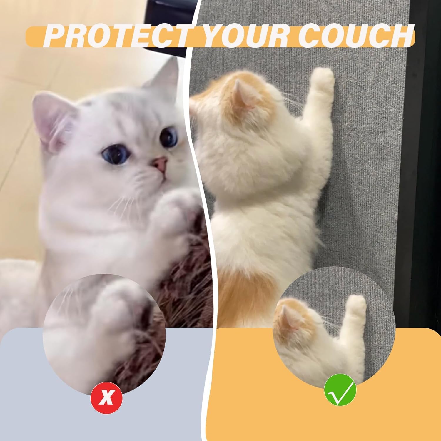 - Multi-purpose:sofa protectors from cats is suitable for all kinds of cat furniture, such as cat trees, cat climbing wall,sofas or other furniture,anti cat scratch furniture protector can be turned into a doormat, carpet or bathroom mat,cat scratch suitable for cats of all ages and breeds.