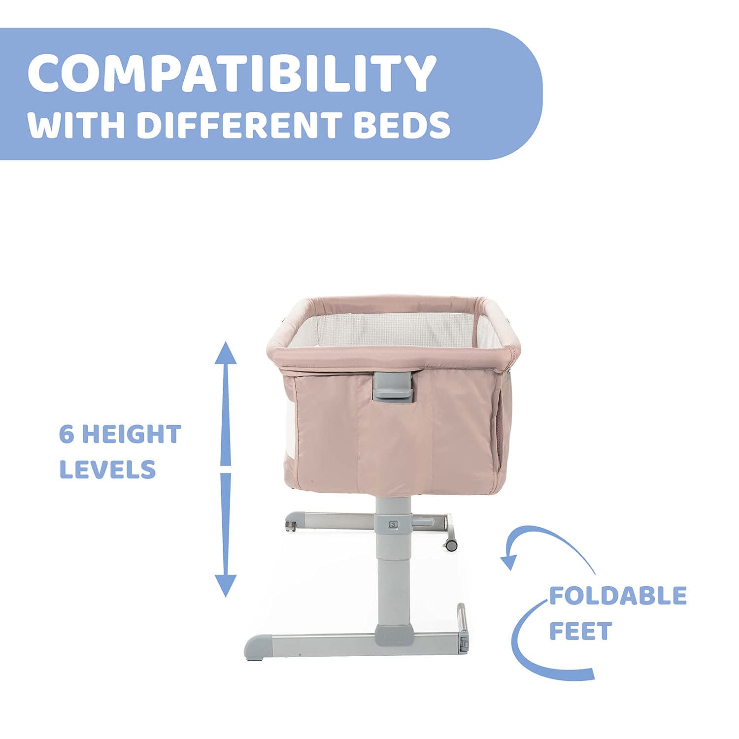 - 6-LEVEL HEIGHT ADJUSTMENT: Compatible with most beds thanks to the 6-level height adjustment and the foldable feet. Fastening the crib to the parents’ bed is easy and safe with the included straps