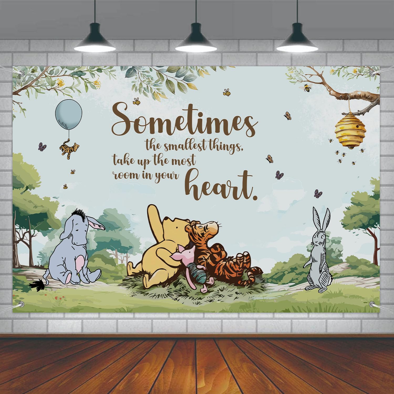 - 🌟Meaningful Design:This cute Winnie backdrop banner features classic Winnie and friends, printed with inspirational quote “”Sometimes the smallest things take up the most room in your heart””. Cute Winnie pattern are attractive and delightful, fun and exciting designs that encourage and inspire children in their daily lives.