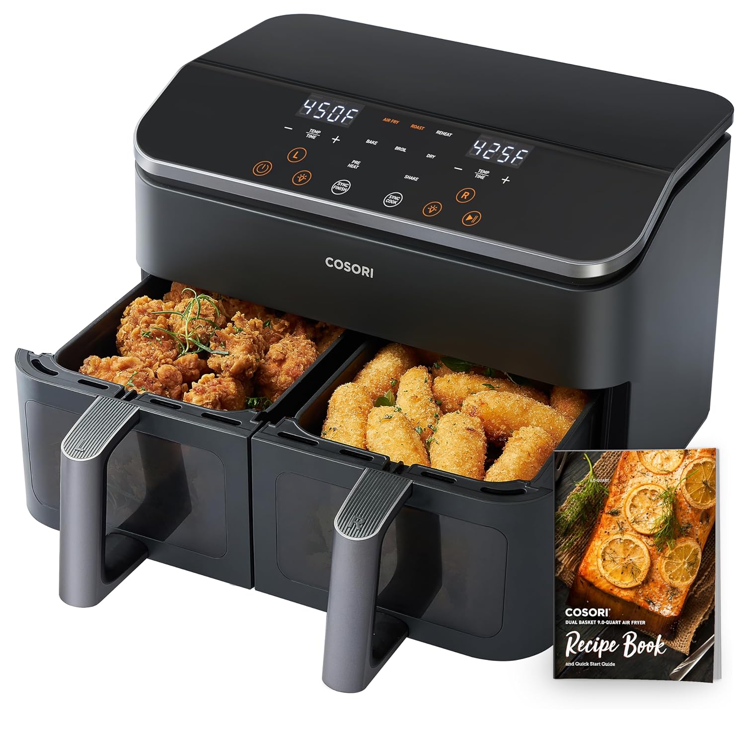 - Product 1: 【Cook Your Way to Health】You can create every meal with up to 85% less oil for crispy goodness with COSORI dual air fryer. Help you use less or no oil with a small amount of fat, but provide with 100% delicious food