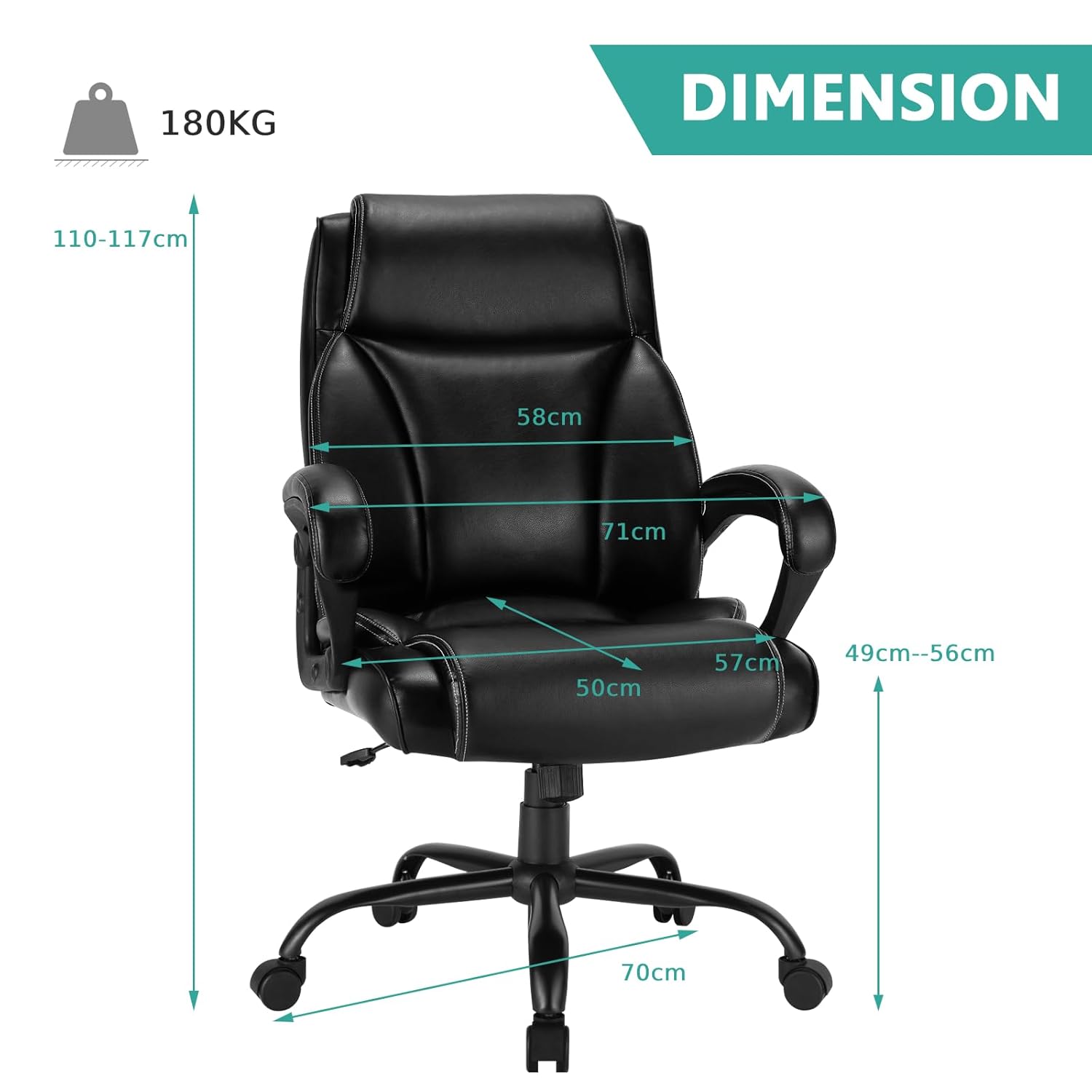 - 【Durable Materials & Heavy Duty Base】This swivel office chair is designed with thick cushion and filled with high density sponge for great comfort. The smooth PU leather is skin-friendly, waterproof and wear-resistant. Moreover, heavy duty 5-claw base plus sturdy gas rod ensures exceptional stability and good load weight of 150kg(330lbs)/180kg(400lbs).