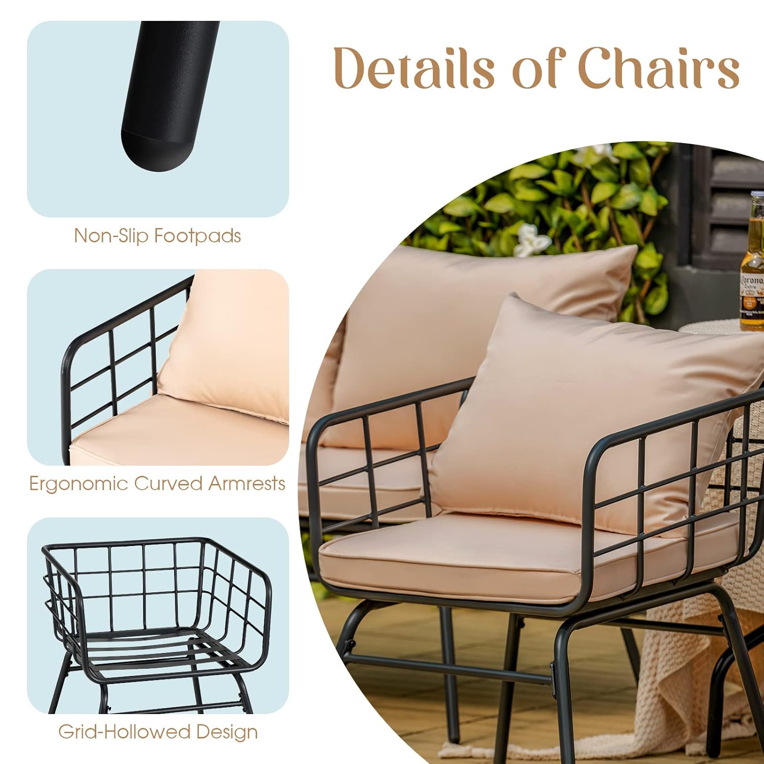 - 【Weatherproof & Sturdy Material】All the 4 pieces are firmly supported by heavy-duty steel frame. Each single bistro chair can load 150kg, the loveseat can load 300kg and the coffee table can bear 50kg. Each steel pipe with powder-coated surface resists well to rust, deformation and bending, enabling the whole garden furniture set to withstand long-time outdoor use.