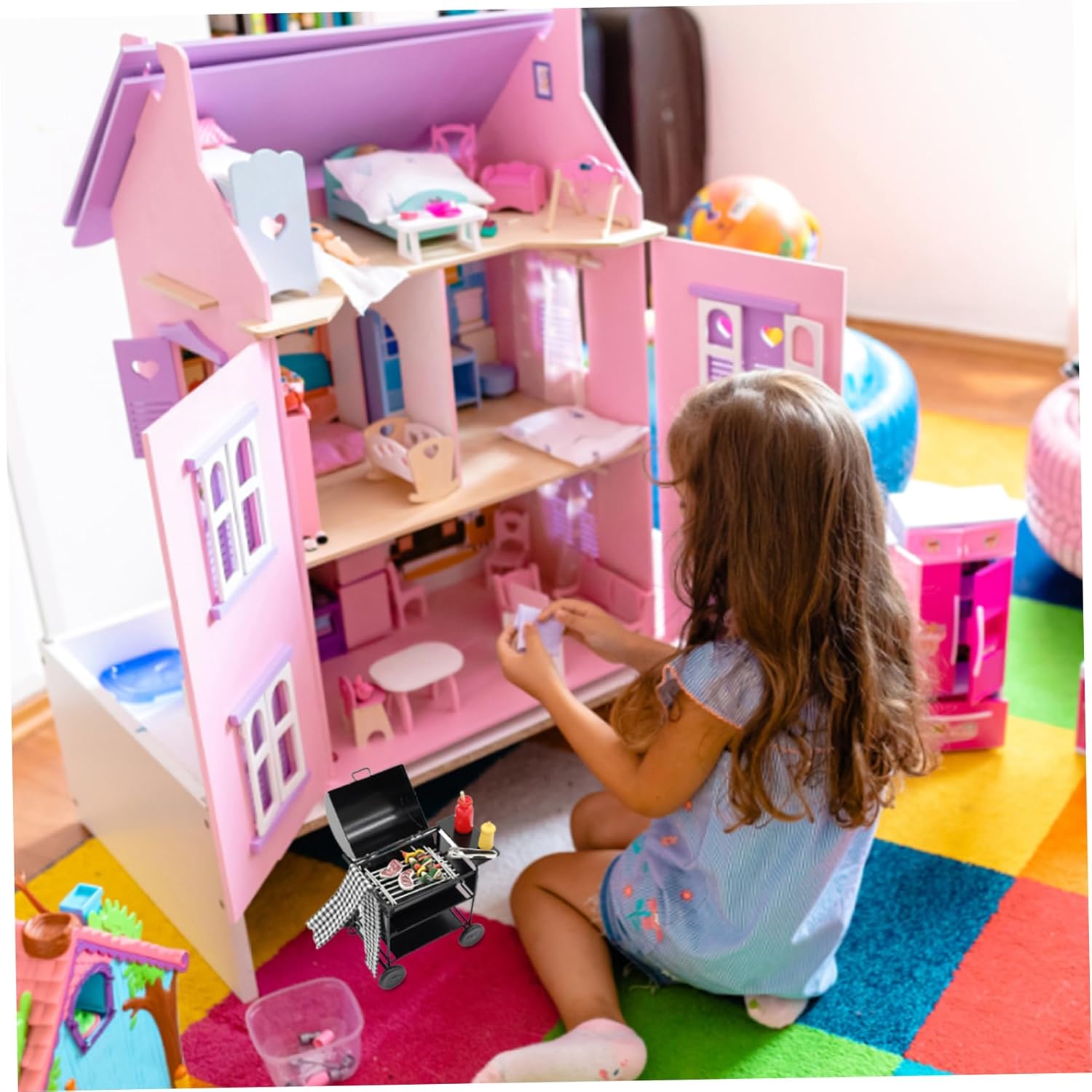 - Versatile Dollhouse Addition: This dollhouse barbecue set is not limited to just the kitchen. It can be used in various dollhouse scenes, including outdoor patios, backyard BBQ areas, or even as part of a miniature restaurant or food truck setup. The versatility of this set allows for endless storytelling possibilities and expands the imaginative play options for kids.