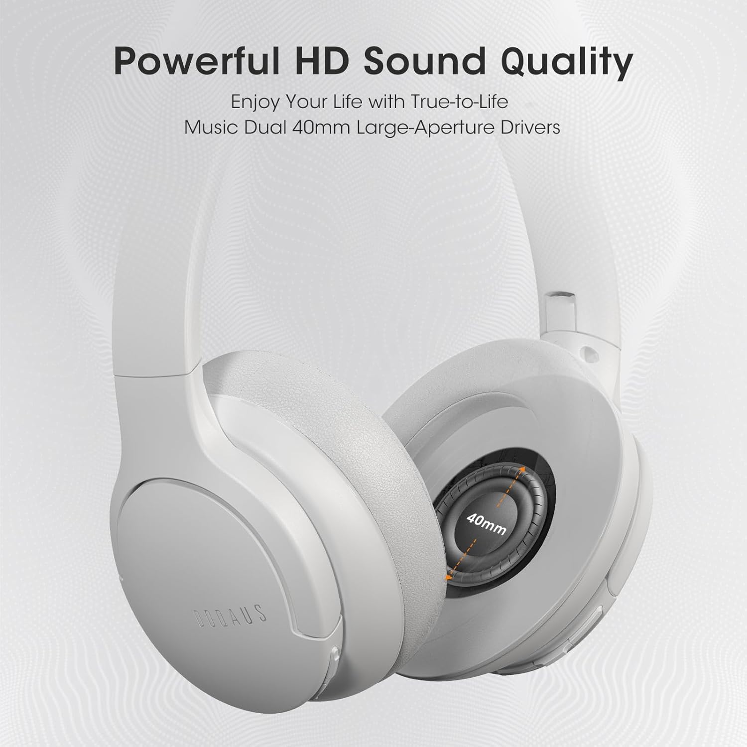 - 【Incredible Sound Quality with 3 EQ Modes】Powered by dual 40mm dynamic driver, the rich details of high-resolution make the sound vivid and immersive. And this bluetooth headphones have 3 EQ modes, which you can freely switch between well-balanced, bass boosted and high definition sounds. DOQAUS upgraded wireless headphones provide you with a listening feast and enjoy immersive music. A perfect choice for music lovers
