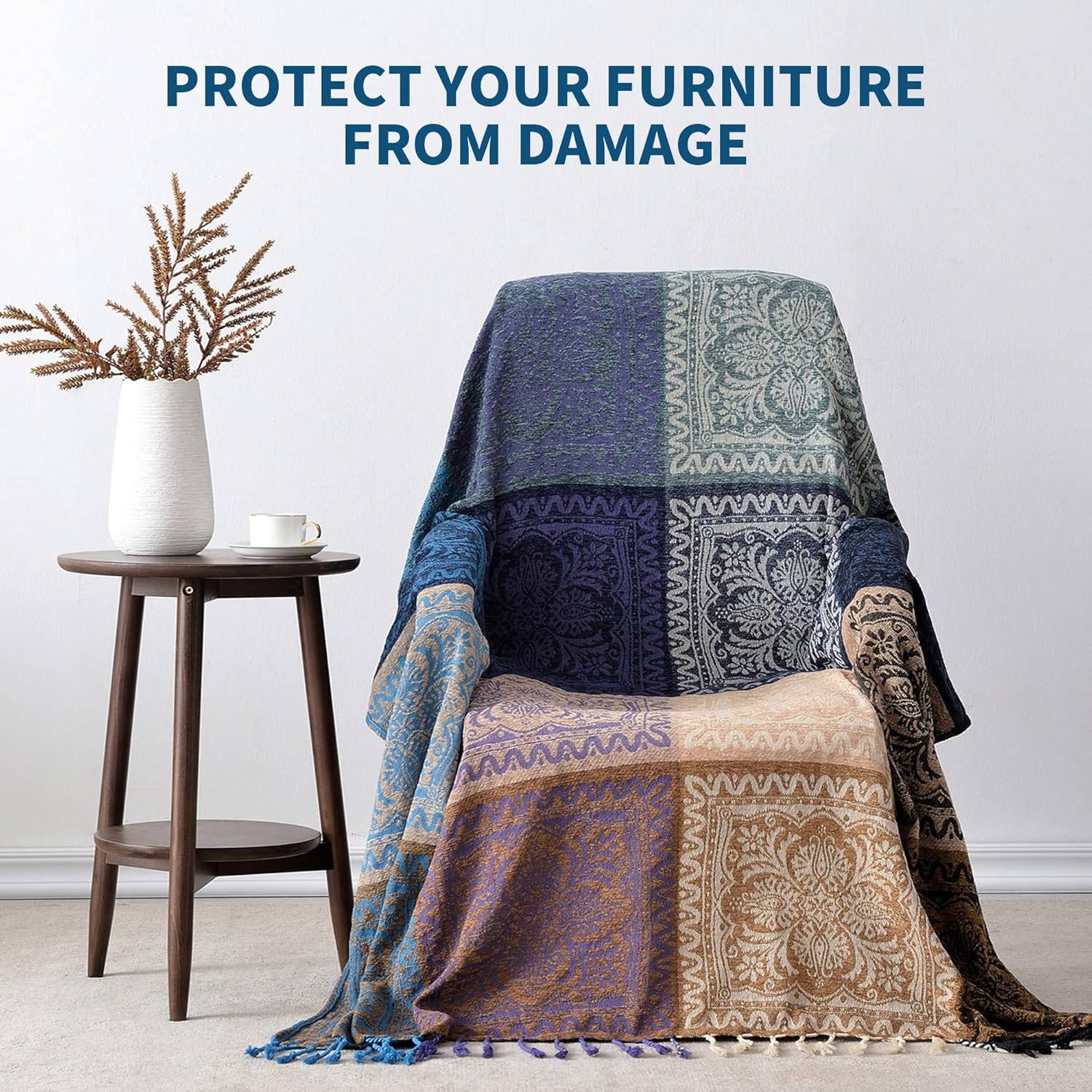 - 【Function】 Boho Throw Blanket can be used as table, chair cloth, sofa, bed cover and other furniture decoration, suitable for heavy European furniture and old-fashioned furniture. The Bohemian throw blanket can be used as accessories for bed blankets.