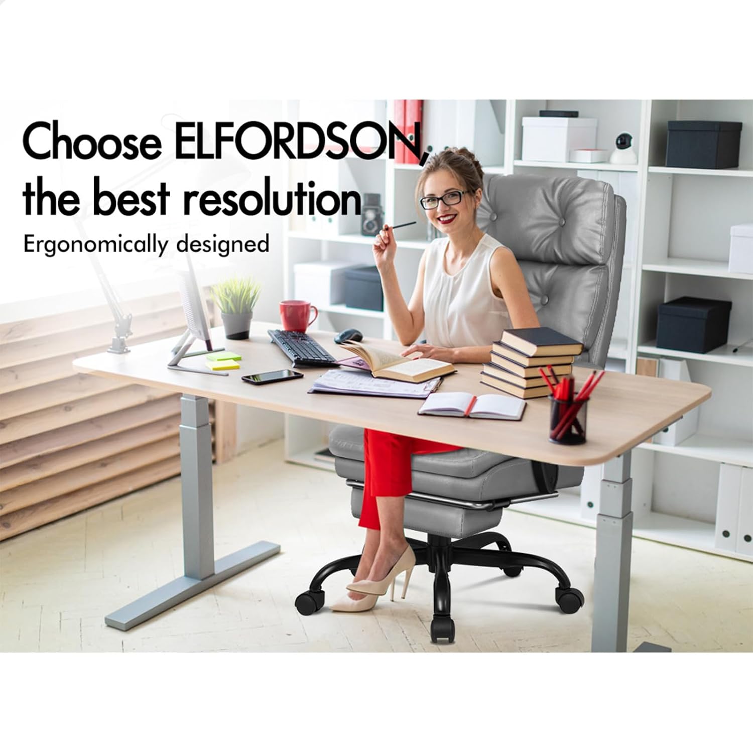 194 reviews for ELFORDSON Executive Office Chair with Dual Paddings, High Back Desk Chairs with Armrests Footrest, Ergonomic Computer Gaming Chair with Recliner Tilting for Home Office, PU…
