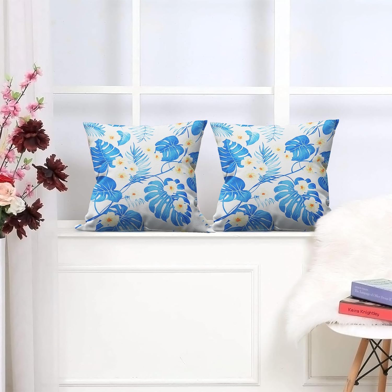 Eternal Beauty Outdoor Cushion Covers Polyester 4PCS 18″x18″, Waterproof Square Throw Pillow Case for Garden Furniture Sofa with Invisible Zipper, Blue Leaf (45cmx45cm)