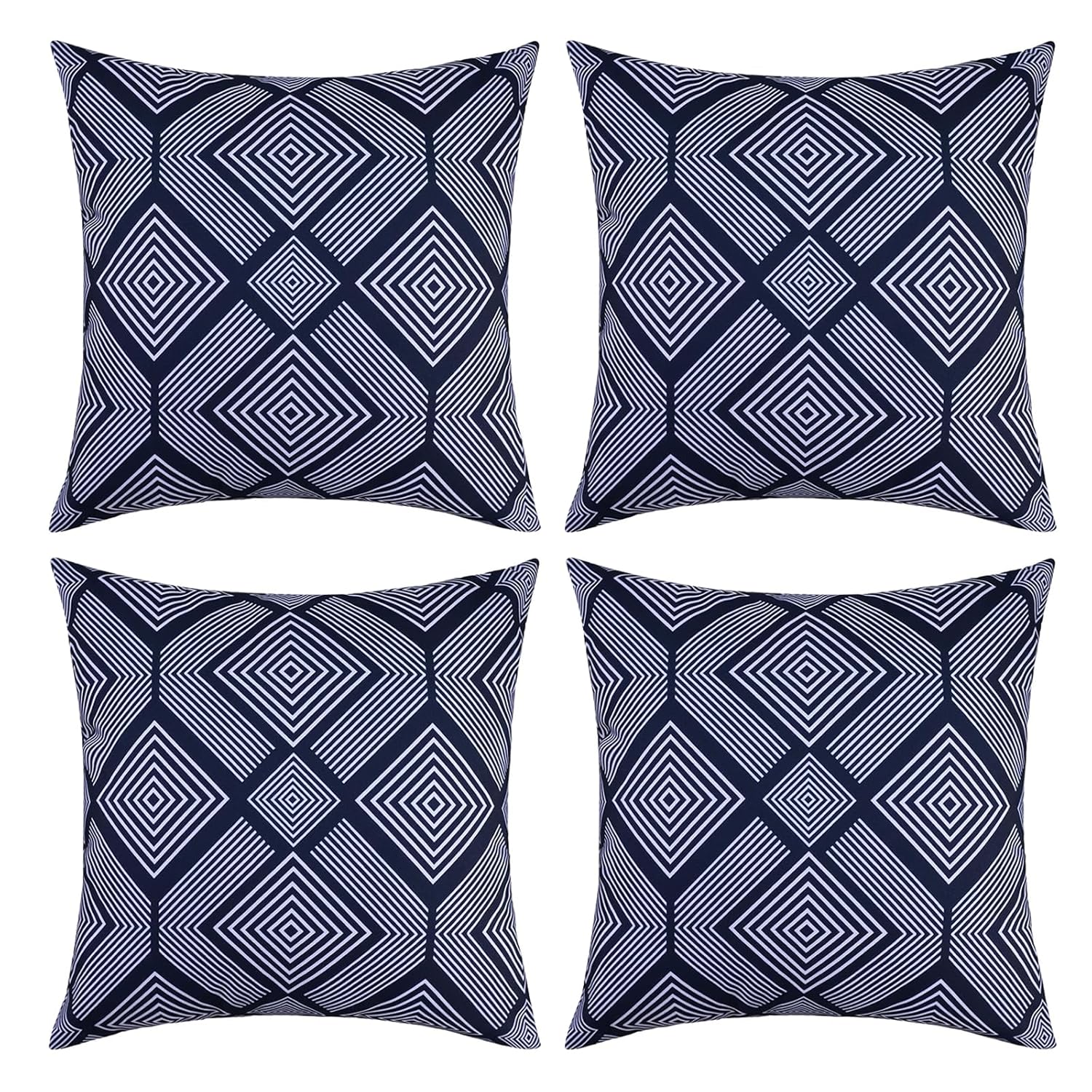 Eternal Beauty Outdoor Cushion Covers Polyester 4PCS 18″x18″, Waterproof Square Throw Pillow Case for Garden Furniture Sofa with Invisible Zipper, Blue Square (45cmx45cm)