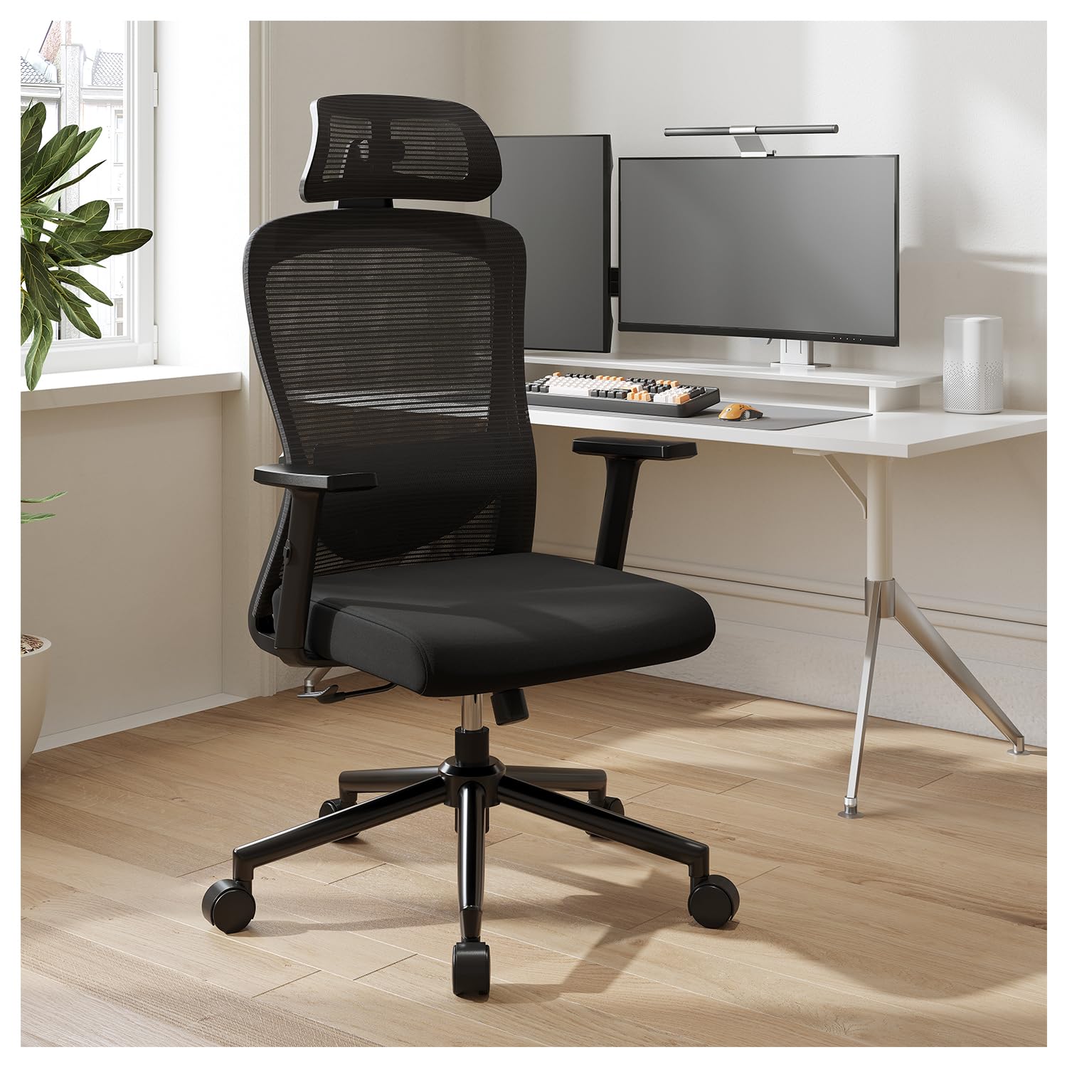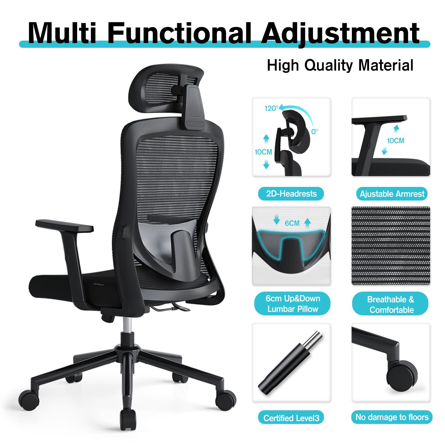 Eucladoceros Office Chair,Ergonomic Desk Chairs with Adjustable Lumbar Support,2D Headrest & Armrest 120° Rocking High Back Mesh Office Chairs for home, Desk Chair (Black)