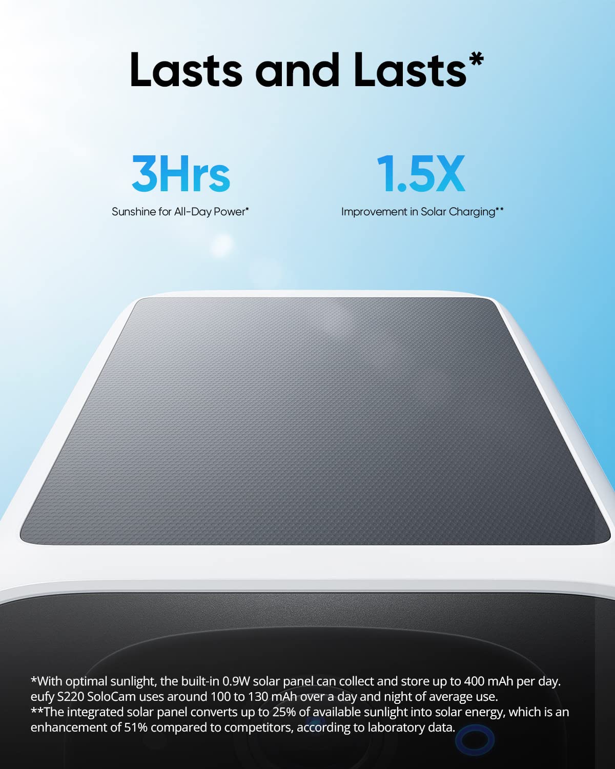 3845 reviews for eufy Security S220 SoloCam Solar Security Camera Outdoor Wireless, Continuous Power, 2K Resolution Home Security Camera, 2.4 GHz Wi-Fi, No Monthly Fee, HomeBase S380 Compatible…