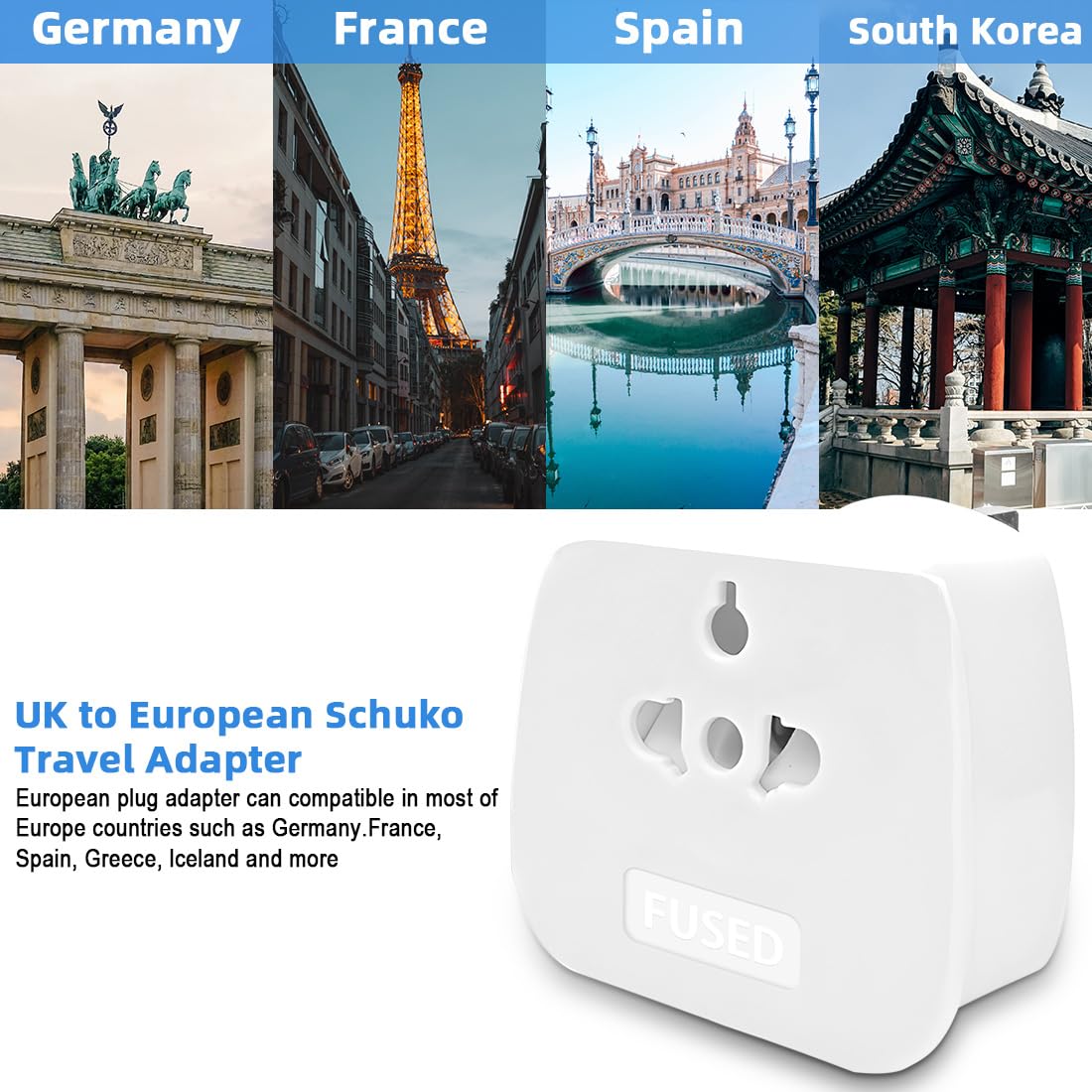 - 【Compact and Lightweight】EU to UK plug adapter compact design of Small size and light weight, our plug adapter for UK is easy to carry and saves your luggage space, you don’t need to take other adapters or sockets.Easy to take back with you after your UK trip for next use
