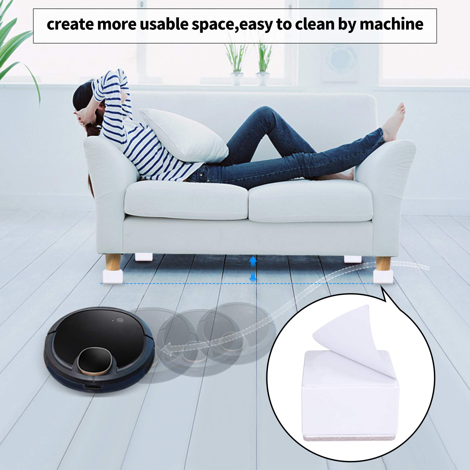 - 【Function】Adds additional height and storage space under beds and furniture making cleaning underneath furniture easier especial great for robot vacuums.