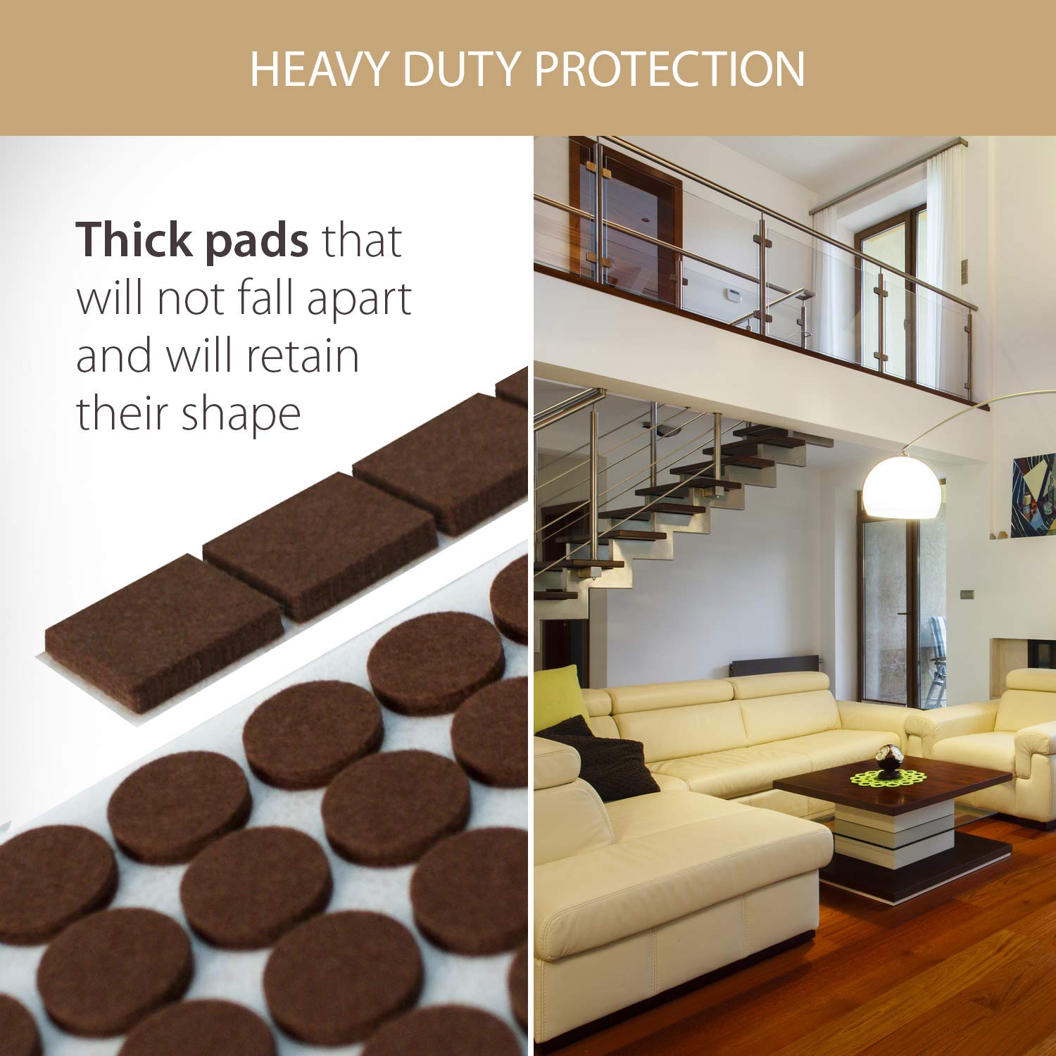 - Strong 3M Adhesive that Keeps Pads in Place – rest assured that our chair floor protectors will provide long term protection for your floors. These foam pads stay on your furniture and prevent scratching on your floors