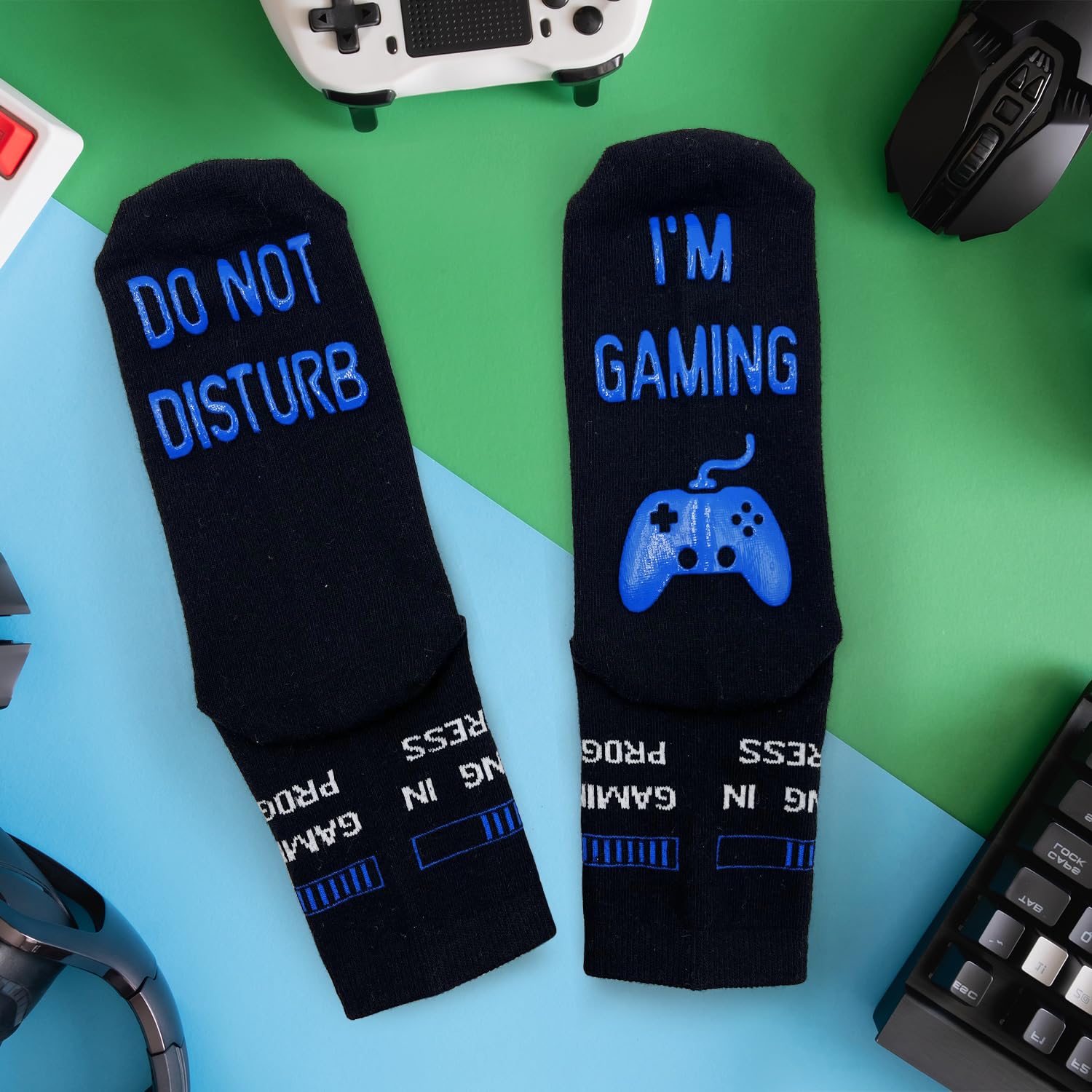 Funny Socks, DO NOT DISTURB I’M GAMING Socks with Grips Gamer Gifts for Men Who Have Everything, Gaming Socks Novelty Gifts for Teenage Boys Men 9-12 uk Christmas Birthday Gifts