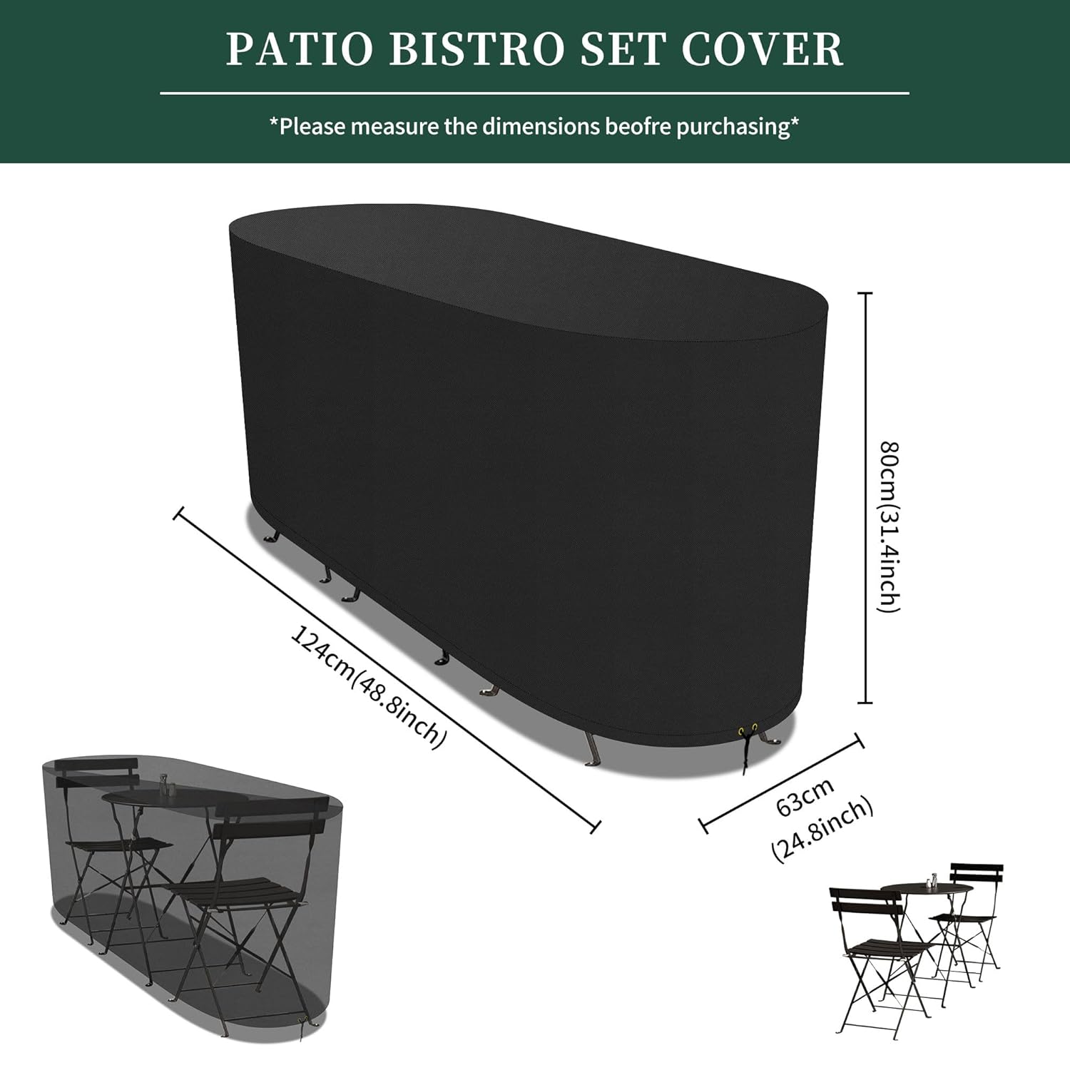 85 reviews for Funshot Bistro Set Cover Waterproof,420D Oxford Fabric Outdoor Garden Patio Furniture Set Cover Windproof Anti-UV,Outdoor Bistro Table Cover for Table and 2 Chairs,124x63x80cm