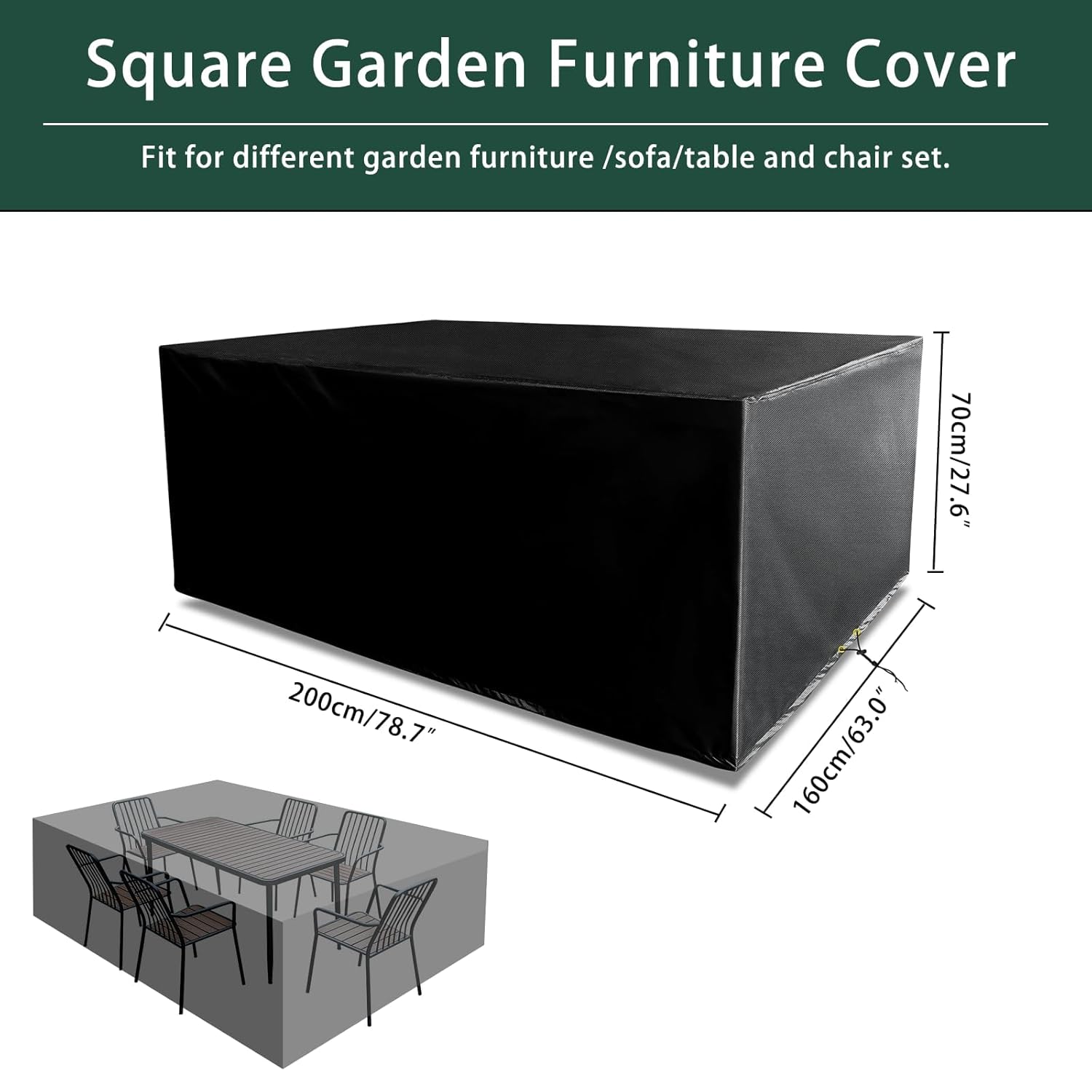 - 【Universal Size】This Garden Furniture Cover Waterproof measures 200x160x70cm. It fits most furniture such as coffee tables, benches, coffee tables, chairs, patio dining sets, sofa sets. Also can be used for indoor or outdoor like balcony, garden, patio. We have various sizes garden furniture covers waterproof, to meet your needs, please measure the size of your furniture set before purchasing.