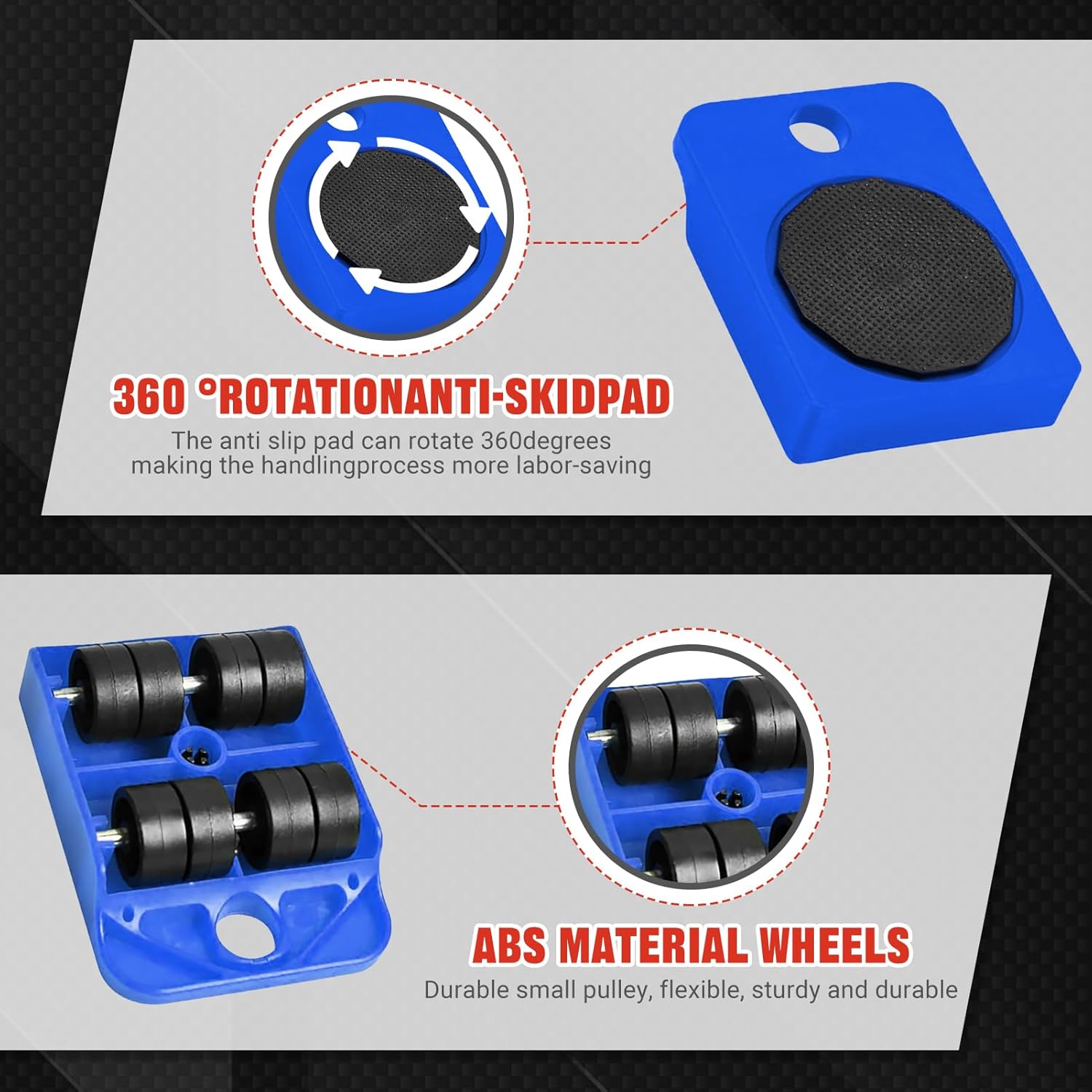Furniture Movers, 5Pcs Heavy Duty Furniture Lifter Furniture Sliders Furniture Moving Wheels Roller Set 150 KG Capacity for Sofas, Couches and Refrigerators (Blue)