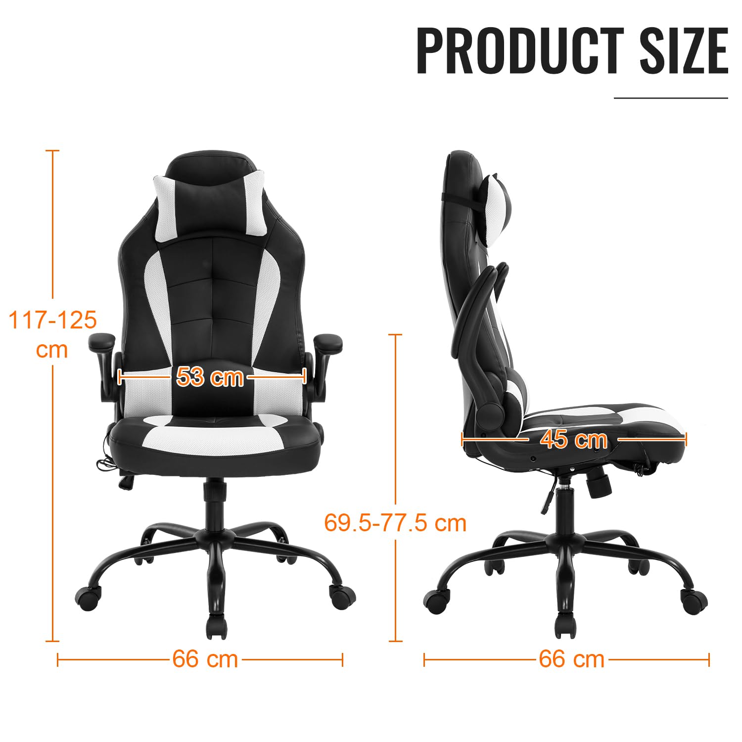 Gaming Chair Ergonomic Office Chair Desk Chair with Lumbar Support Flip Up Arms Headrest PU Leather Executive High Back Computer Chair for Adults Women Men (White)