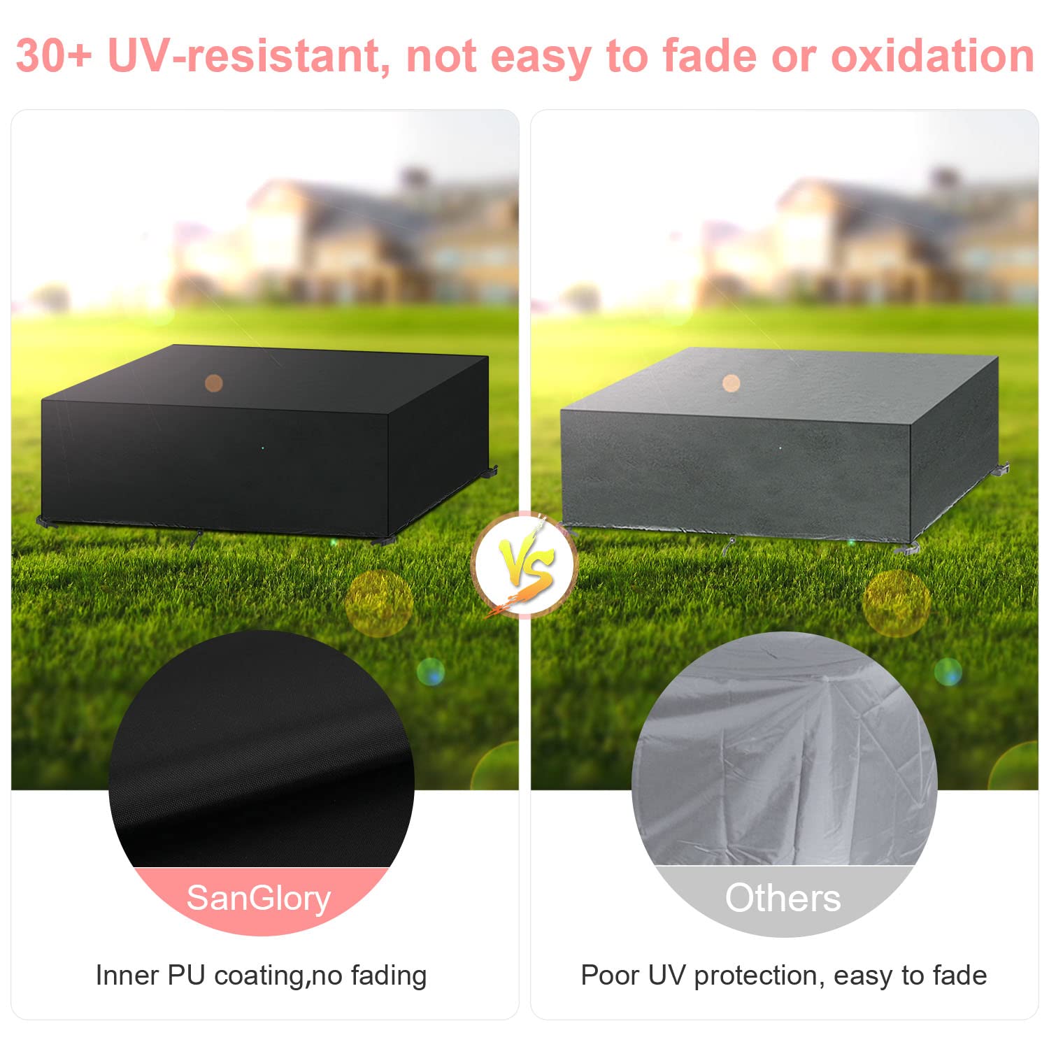 - ➥【Heavy Duty Furniture Covers】Made of durable oxford fabric with double-stitched bound edges, which is water resistant, tear-resistant, UV-resistant and fade resistant, better protect your outdoor patio furniture from rain, snow, frost, sun, wind, dust and other harsh environments.