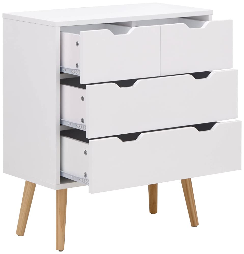 - SCANDINAVIAN DESIGNS: Transform your bedroom with a classic 4-drawer chest in a modern Scandi design that’s ideal for a style-conscious contemporary space. The simple construction offers two full-width and two half-width drawers, each with neat cut-out handles that further accentuate the minimalist Scandi style.