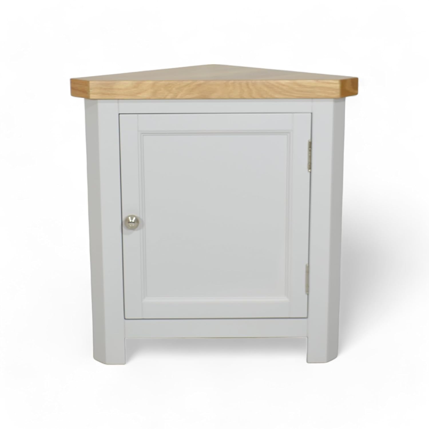 GROFurniture Cashmere Grey Corner Cabinet, Painted Small Storage Cuboard, Triangle Unit Oak Top Cabinet for Livingroom, Bathroom & Hallway, Fully Assembled 41D x 41W x 61H cm