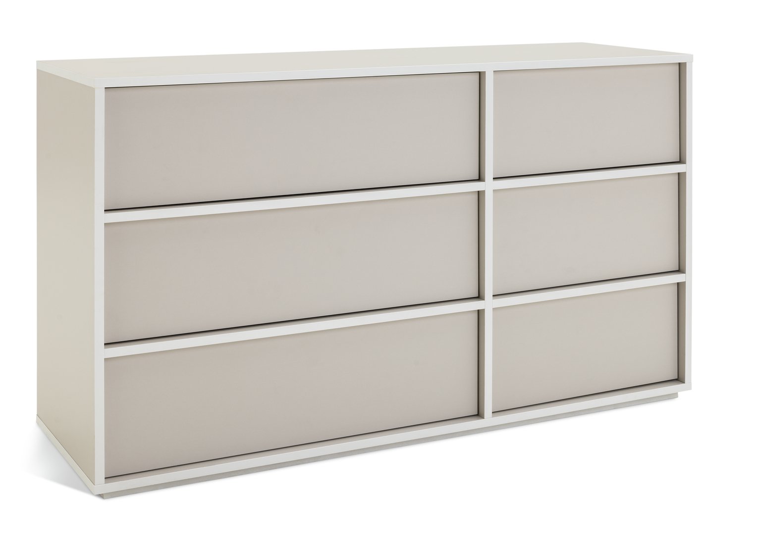 Scandi inspired to bring order to busy bedrooms, Edale is a winner. In calming beige and putty tones with 6 deep drawers, it will swallow up daily clutter, leaving a clear, calm and restful environment. . The Inset drawers, push to open fixings and white contrasting edges add design details to a minimalist range. Part of the Edale collection. Made of particleboard and particleboard. 6 drawers with metal runners. Self-assembly – 1 person recommended (includes wall fixings). If this product is over 60cm high it must be securely attached to the wall to prevent overturning. Dimensions:Size H73, W120, D40cm. Internal drawer H12.5, W39.4, D35cm. Large internal drawer H12.5, W65.5, D35cm. Weight 47kg. General information:By choosing FSC certified products, you are supporting responsible management of the world’s forests. Manufacturer’s 2 year guarantee. EAN: 5905549567425.
