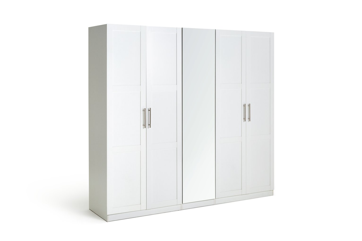 Habitat Munich Panelled 5 Door Mirror Wardrobe – White