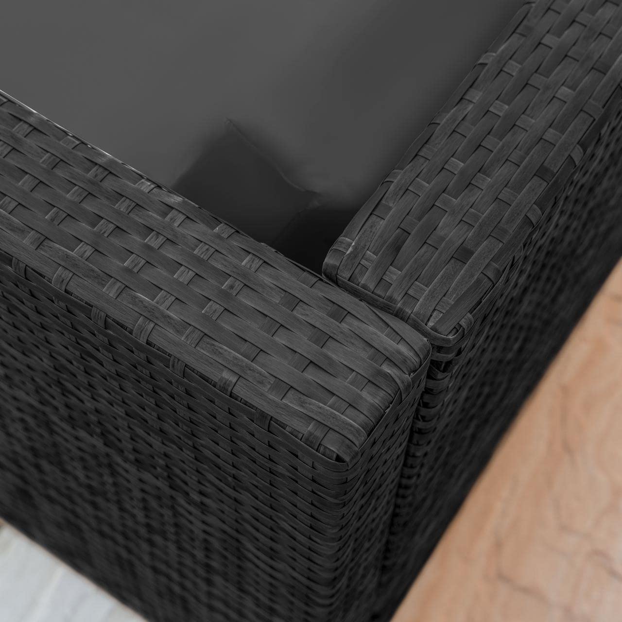 - CUSHIONED OUTDOOR SEATS – The outdoor sofas are equipped with thick, soft cushions made from UV-resistant polyester fabric, providing superior comfort while preventing colour fading. The easy-to-clean design makes maintenance a breeze.