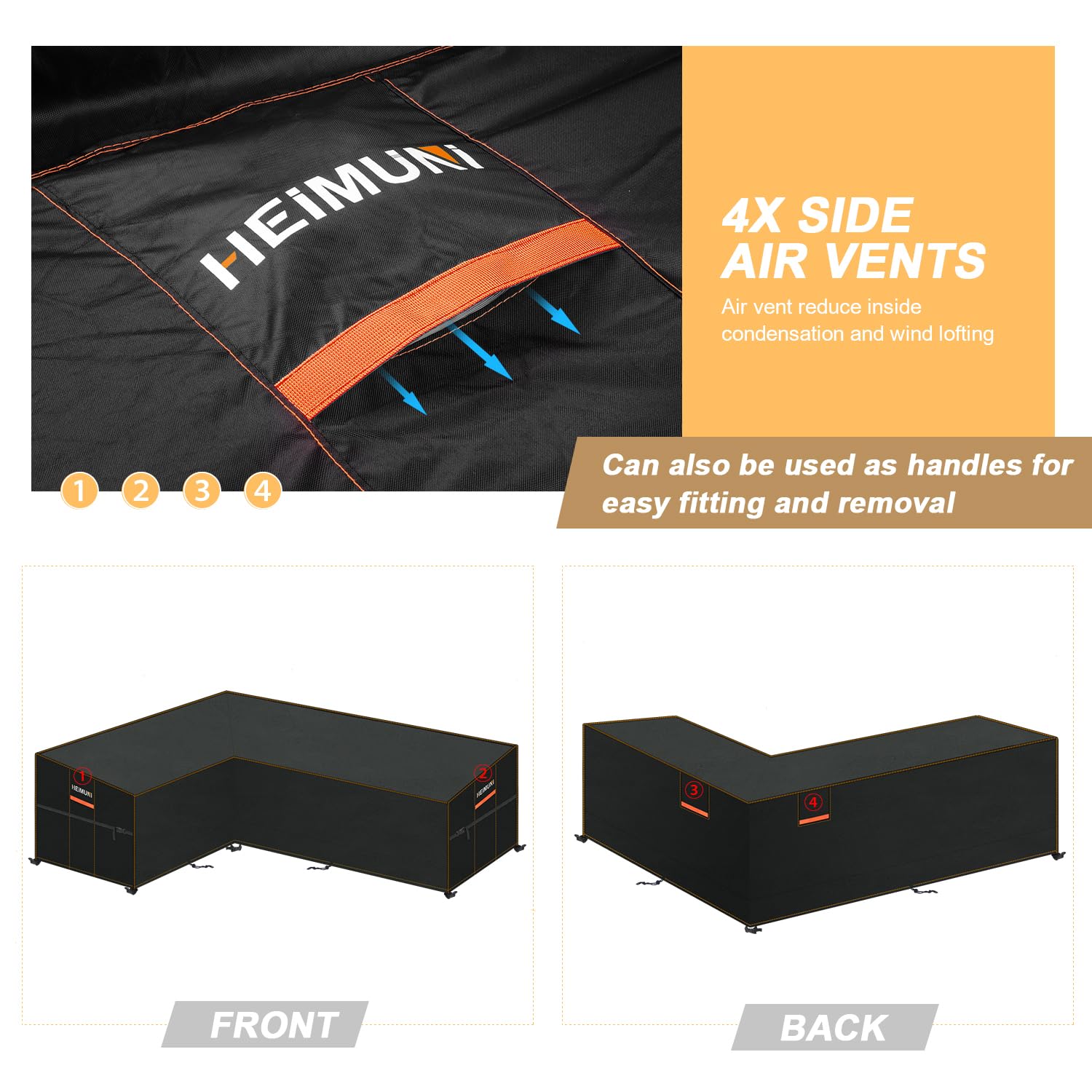 - 【Waterproof L-Shape Garden Sofa Covers】- The L shape sofa cover is made of 420D high density Oxford fabric with thickened PU coating to ensure that the cover is waterproof (up to 5000 Pa). The protective cover for garden furniture L shape uses a double needle stitching process and the outer edge technology is used for the joints. The upper joint seam is fully glued so that no water droplets flow through our furniture cover.