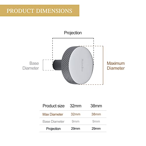 - LUXURY CABINET KNOB: Add elegance to your home with Heritage Brass. Our Knurled Disc Knob is ideal for doors and drawers on cabinets, cupboards, wardrobes and furniture. Your purchase includes 1 brass cabinet knob and all necessary M4 fixing screws and fasteners for easy home installation